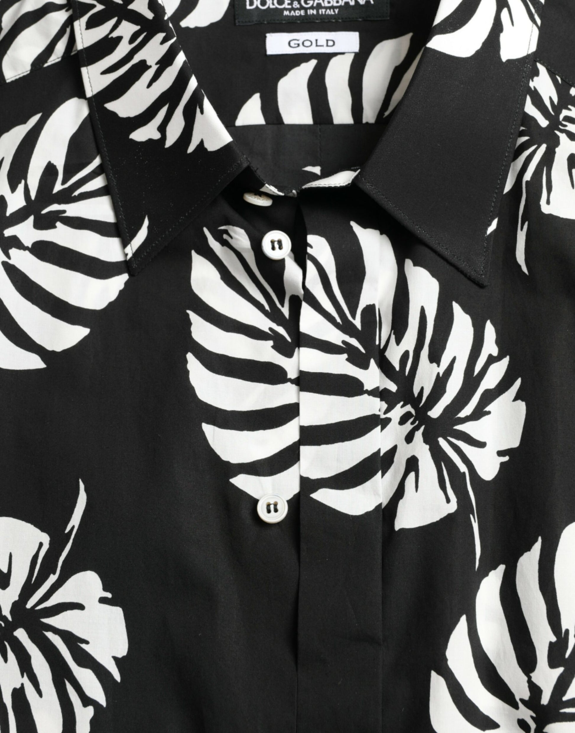 Step into the world of luxury with this absolutely stunning, 100% authentic Dolce & Gabbana dress shirt. Designed with a sleek slim fit, this shirt is a masterpiece featuring a lush leaf print, perfect for any fashion-forward wardrobe. Crafted from silky-feeling, long-staple cotton poplin, it provides both supreme comfort and impeccable style. A full front button closure and signature logo details make this Italian-made shirt a true statement of elegance.