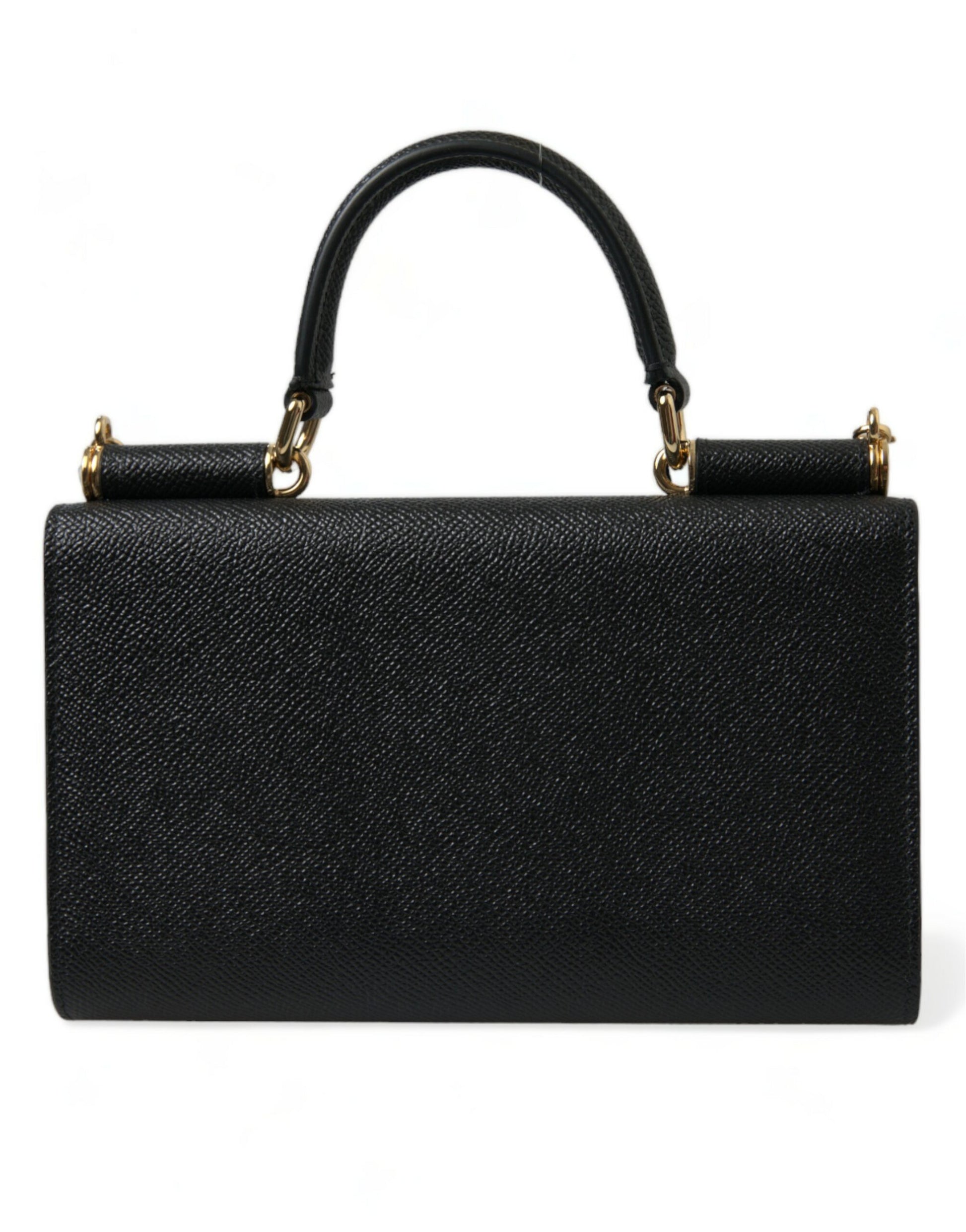 Embrace the epitome of Italian luxury with this Dolce & Gabbana phone case that doubles as a glamorous crossbody bag and wallet. Crafted from the finest leather, it flaunts a sleek black hue complemented by gold metal accents for an opulent touch. The versatile piece features a chic chain shoulder strap and a practical top handle, along with a secure magnetic flap closure. Inside, you’re equipped with a slit pocket and card slots for organization. This accessory is not only a statement of high fashion but also a masterpiece of craftsmanship, made in Italy.