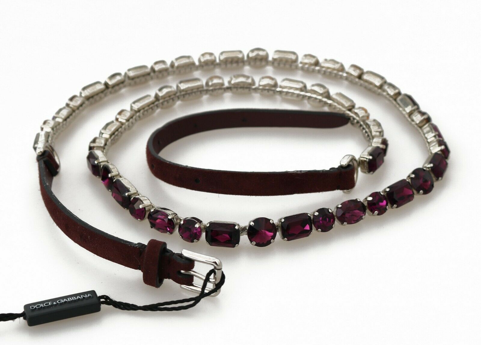 Indulge in the epitome of Italian luxury with this exquisite belt from Dolce & Gabbana. Crafted from premium leather and adorned with sparkling purple and pink crystals, this belt is a statement piece that exudes sophistication. Perfect for adding a touch of glamour to any ensemble, it’s a gorgeous accessory that’s sure to turn heads. With logo details for an authentic finish, this belt has been meticulously made in Italy and is a testament to Dolce & Gabbana’s commitment to exceptional craftsmanship.