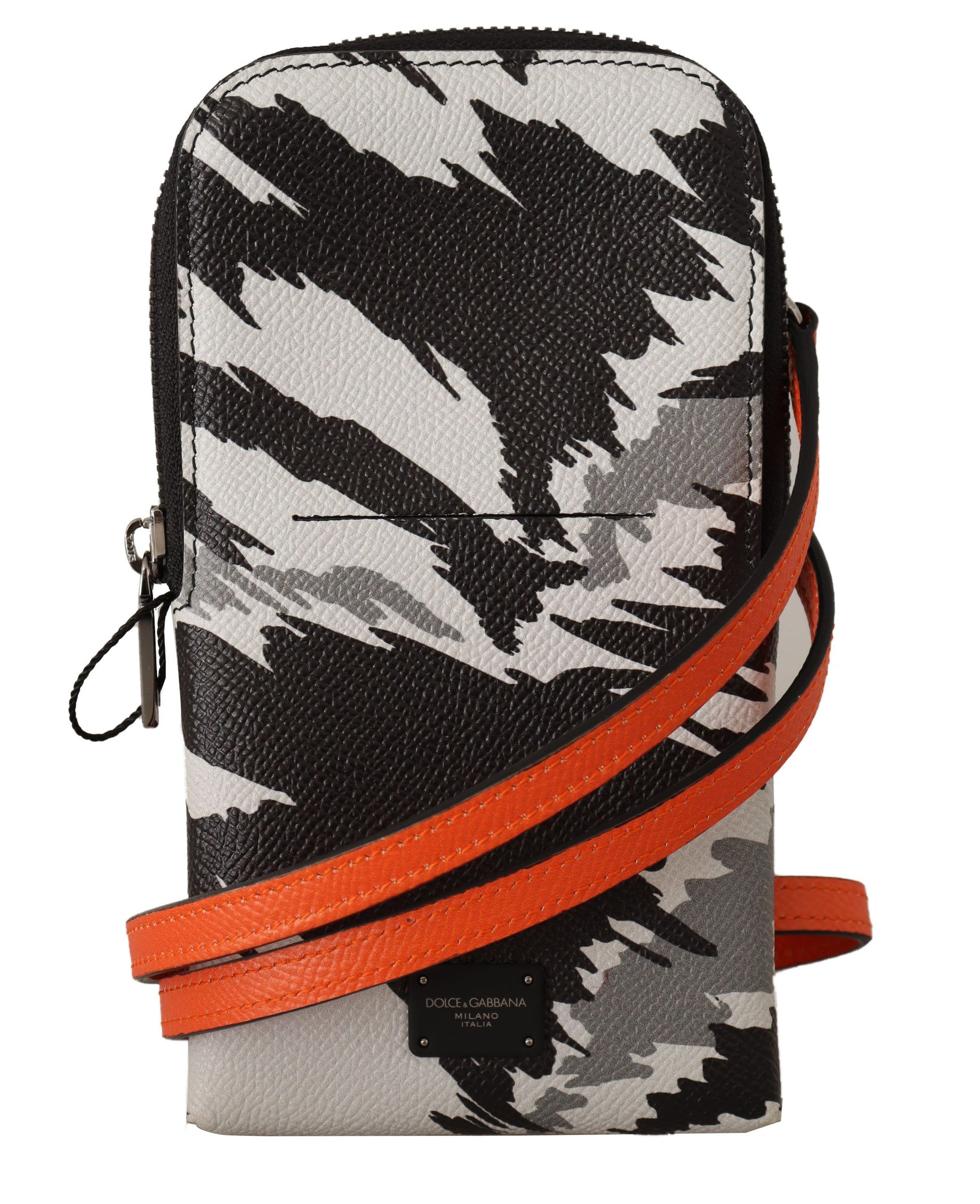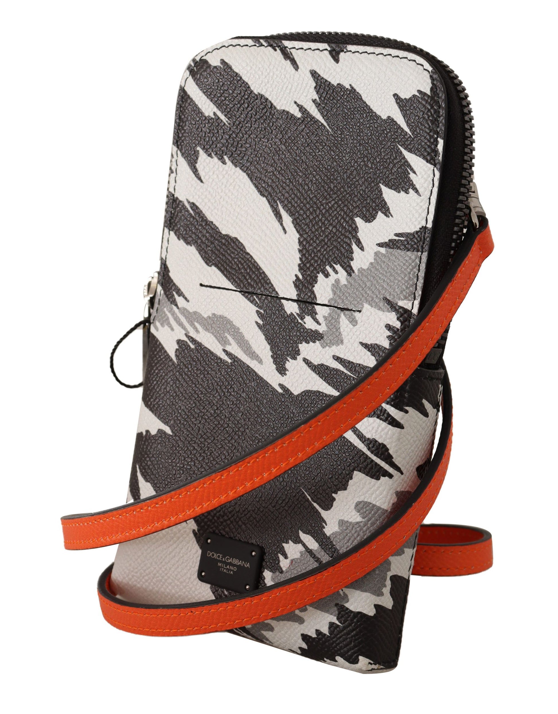 Step up your accessory game with this stunning and authentic neck strap phone pocket from the acclaimed fashion house, Dolce & Gabbana. Perfect for safeguarding your mobile device in style, this chic case is not just a holder but also a statement of elegance. The monochromatic gray and white print adds a modern touch, while the luxurious leather and thoughtful design ensure durability and functionality. With convenient card slots, a secure full zipper closure, and a detachable neck or shoulder strap, this phone pocket is both practical and stylish. Crafted in Italy, it is a reflection of top-notch craftsmanship and Italian fashion sensibilities. Elevate your everyday essentials with this striking accessory.