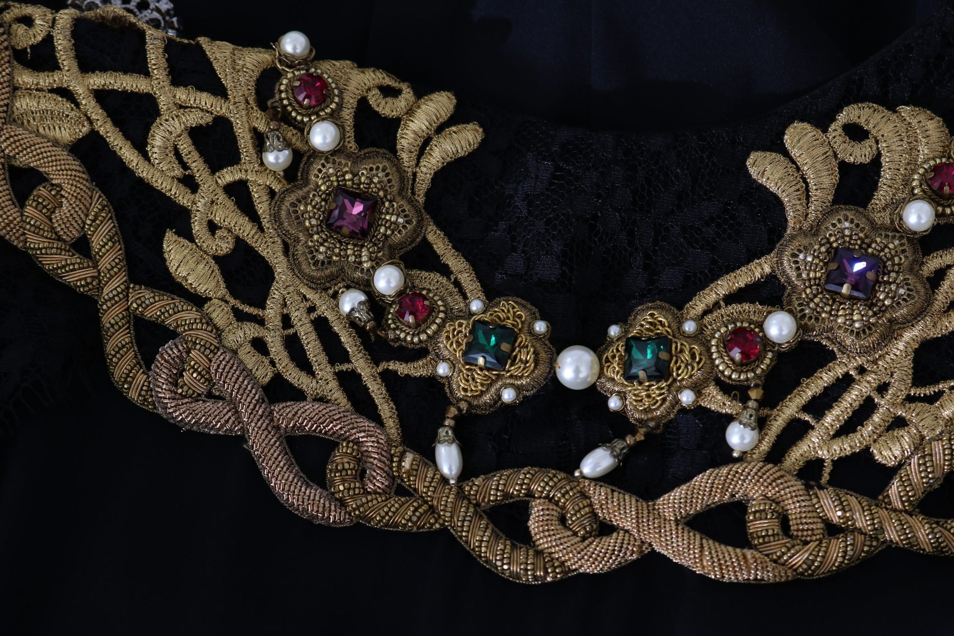 Dolce & Gabbana Elegant Maxi Black Dress with Gold Detailing