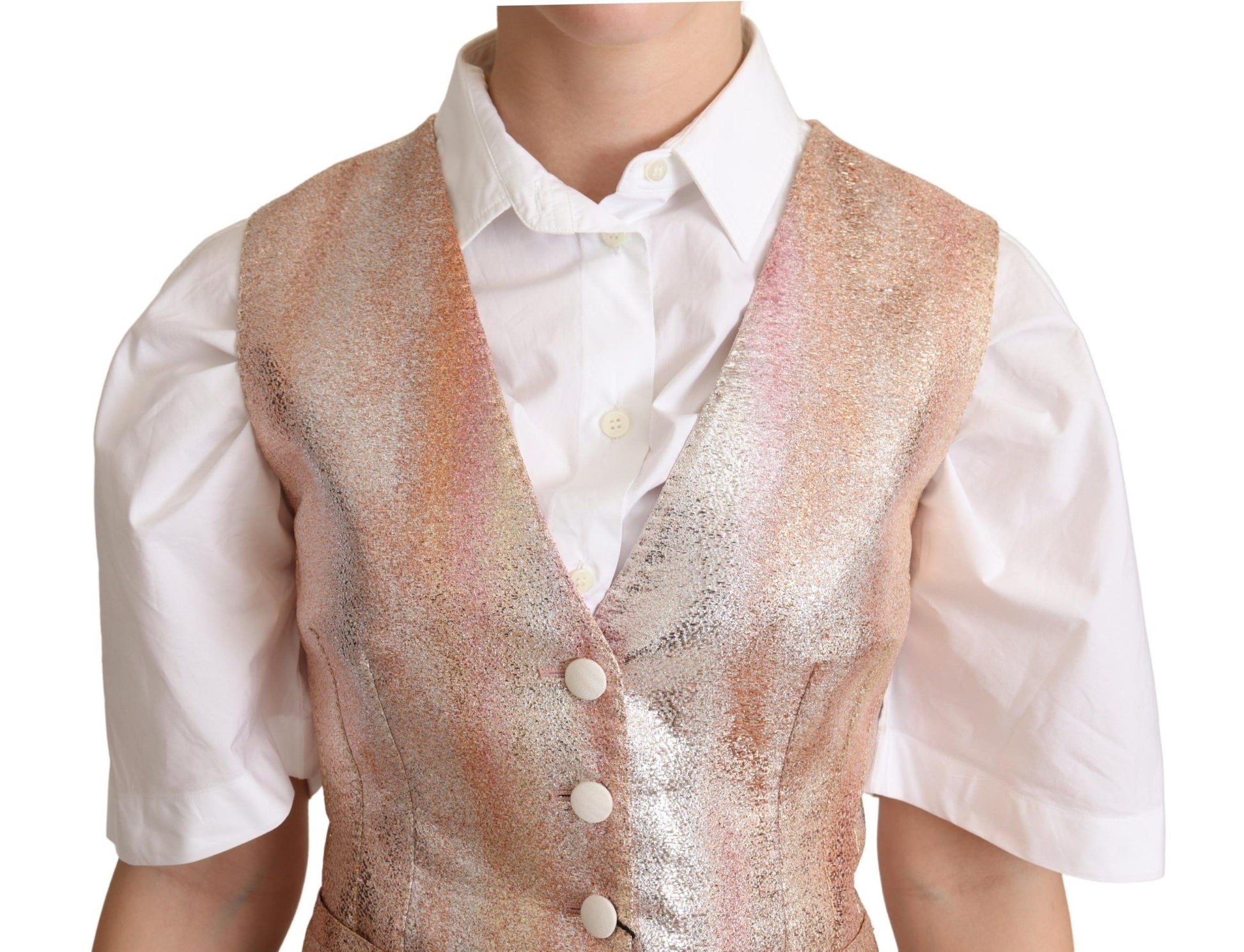 Dolce & Gabbana Elegant Pink Metallic Sheen Waistcoat