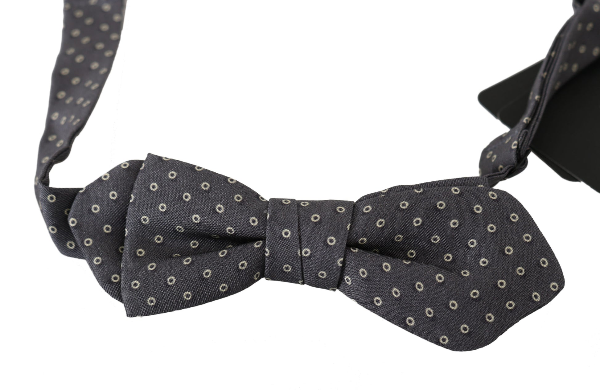 Dolce & Gabbana Elegant Silk Gray Circle Pattern Bow Tie