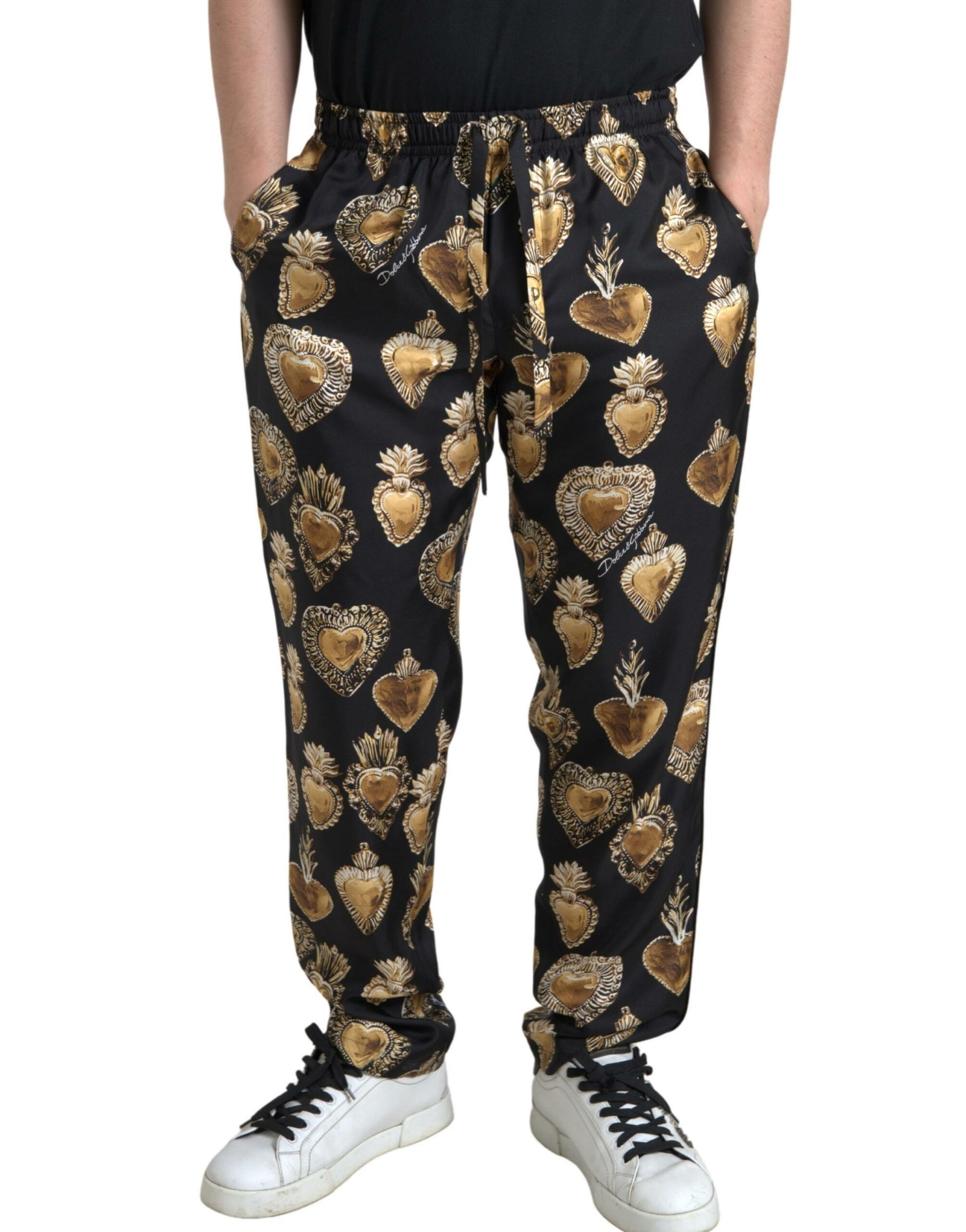 Dolce & Gabbana Elegant Silk Joggers with Heart Print