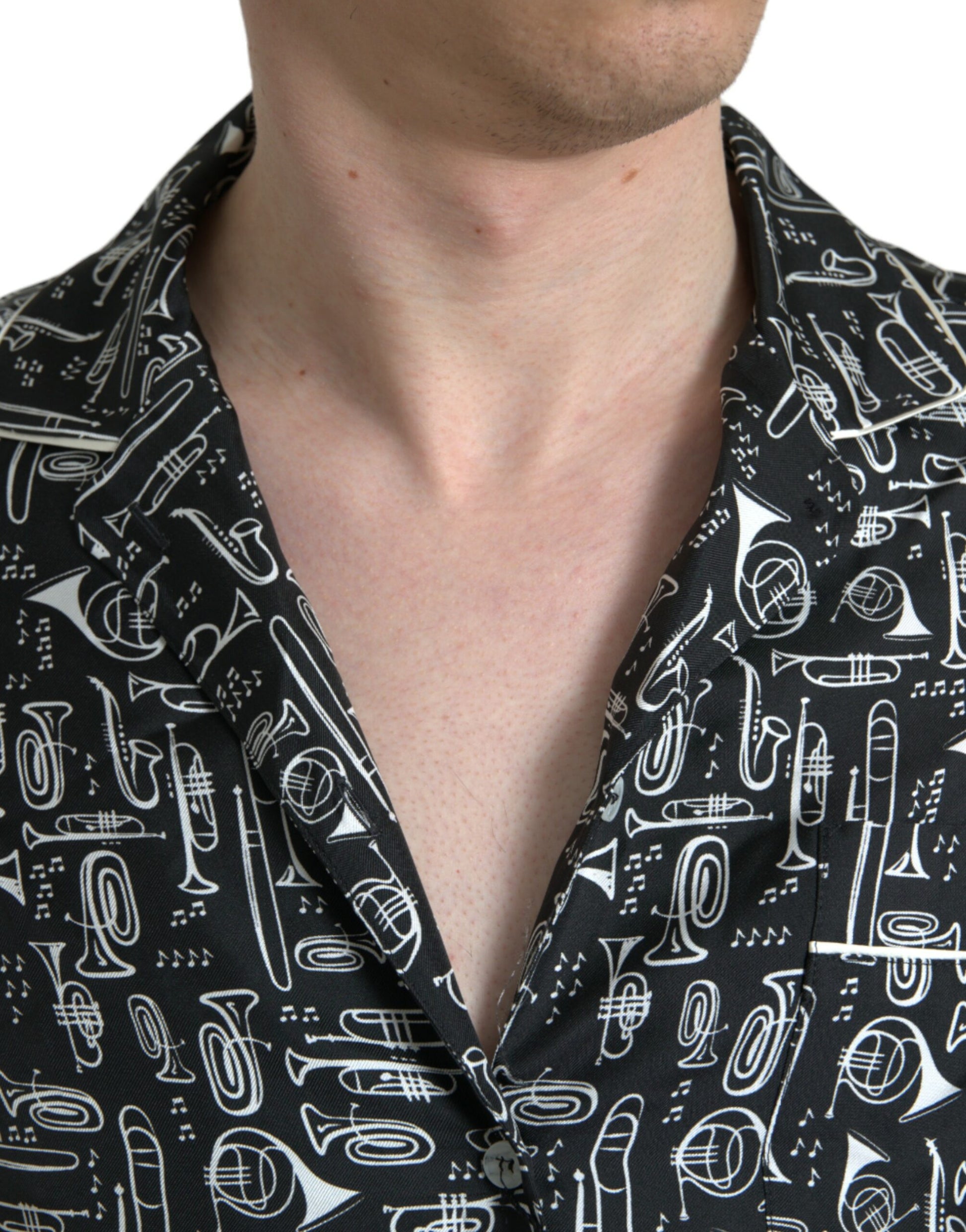 Dolce & Gabbana Elegant Silk Polo T-Shirt with Trumpet Print