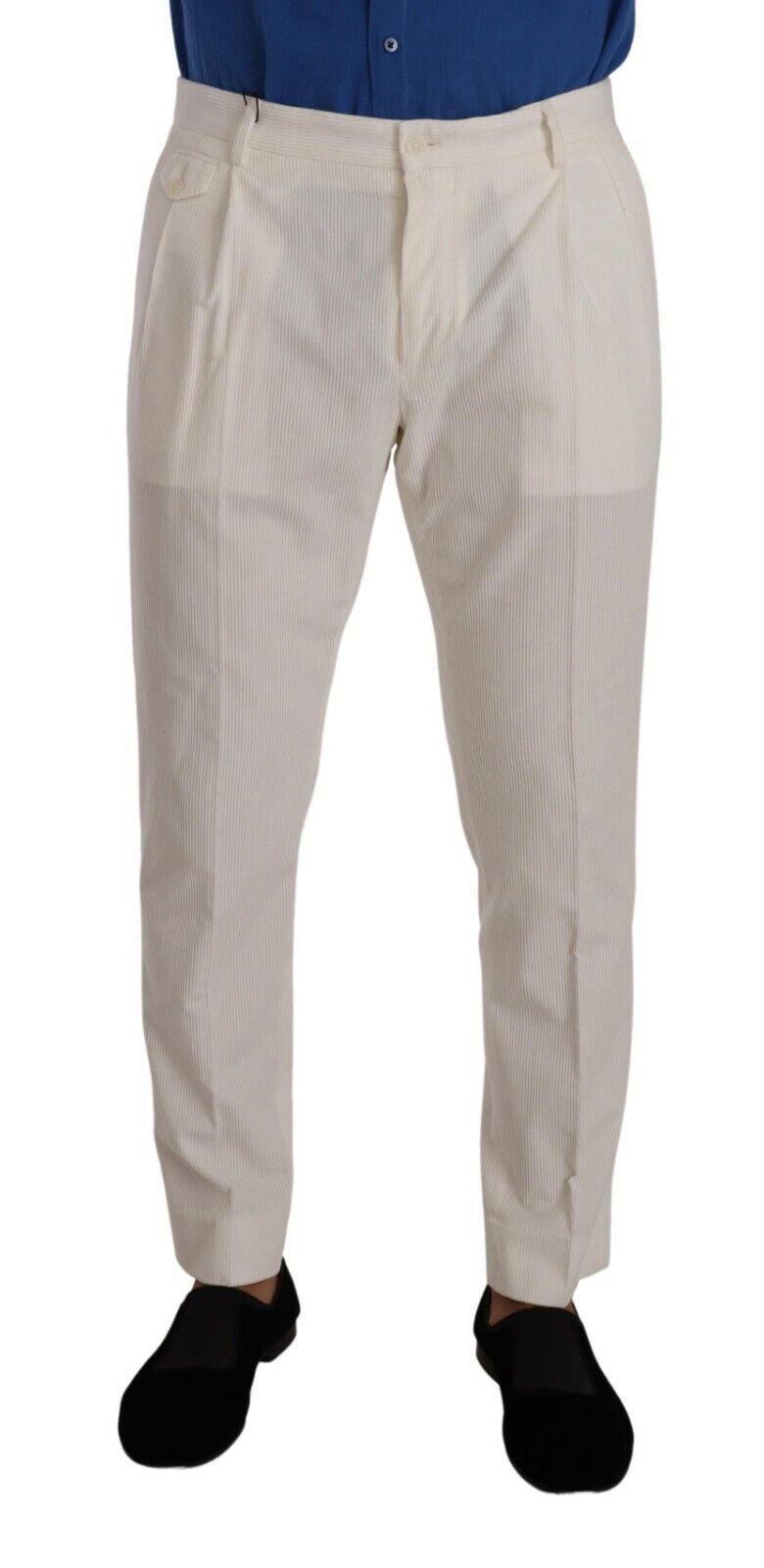 Dolce & Gabbana Elegant Tapered Corduroy Pants in Off White