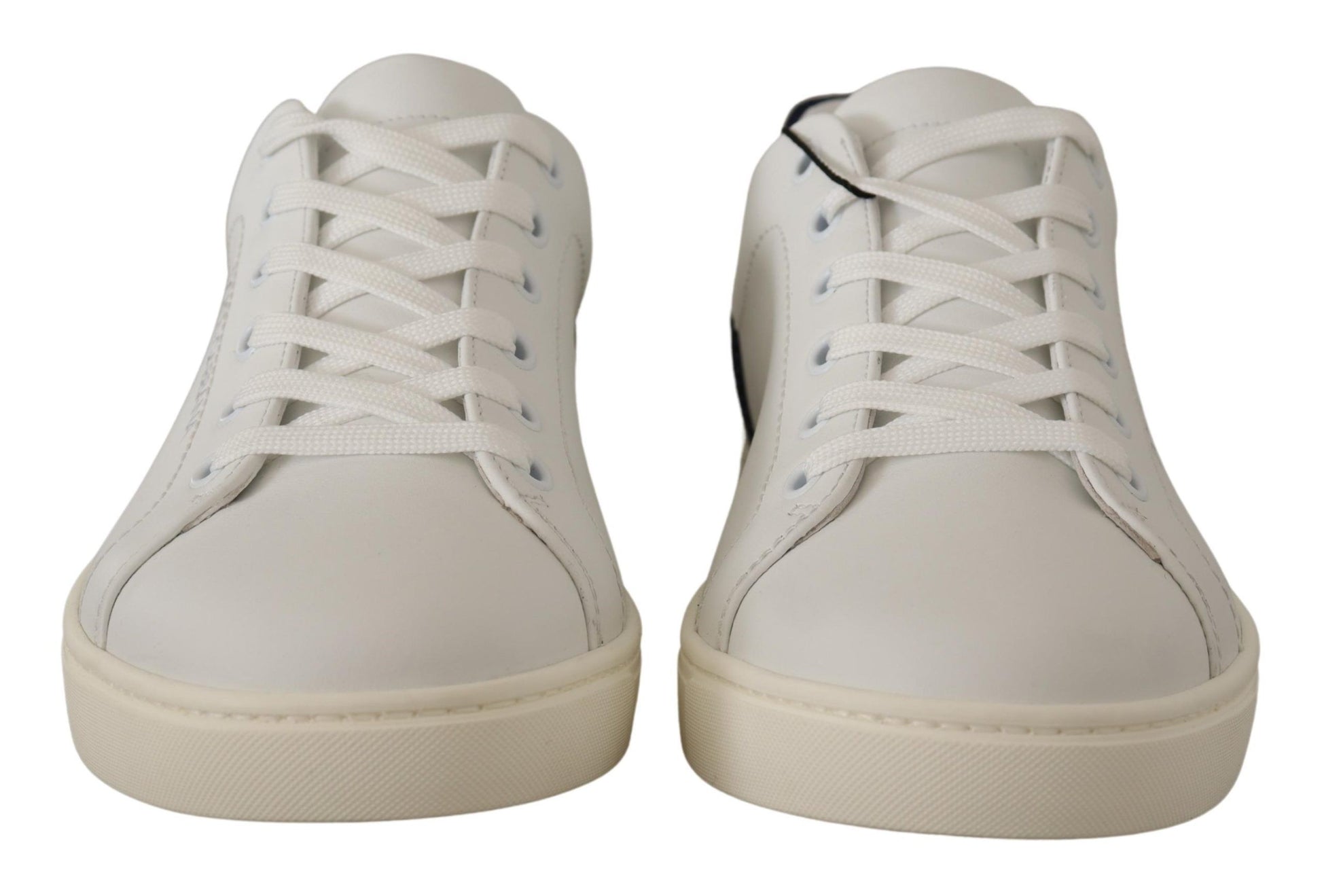Dolce & Gabbana Elegant White and Blue Low-Top Leather Sneakers