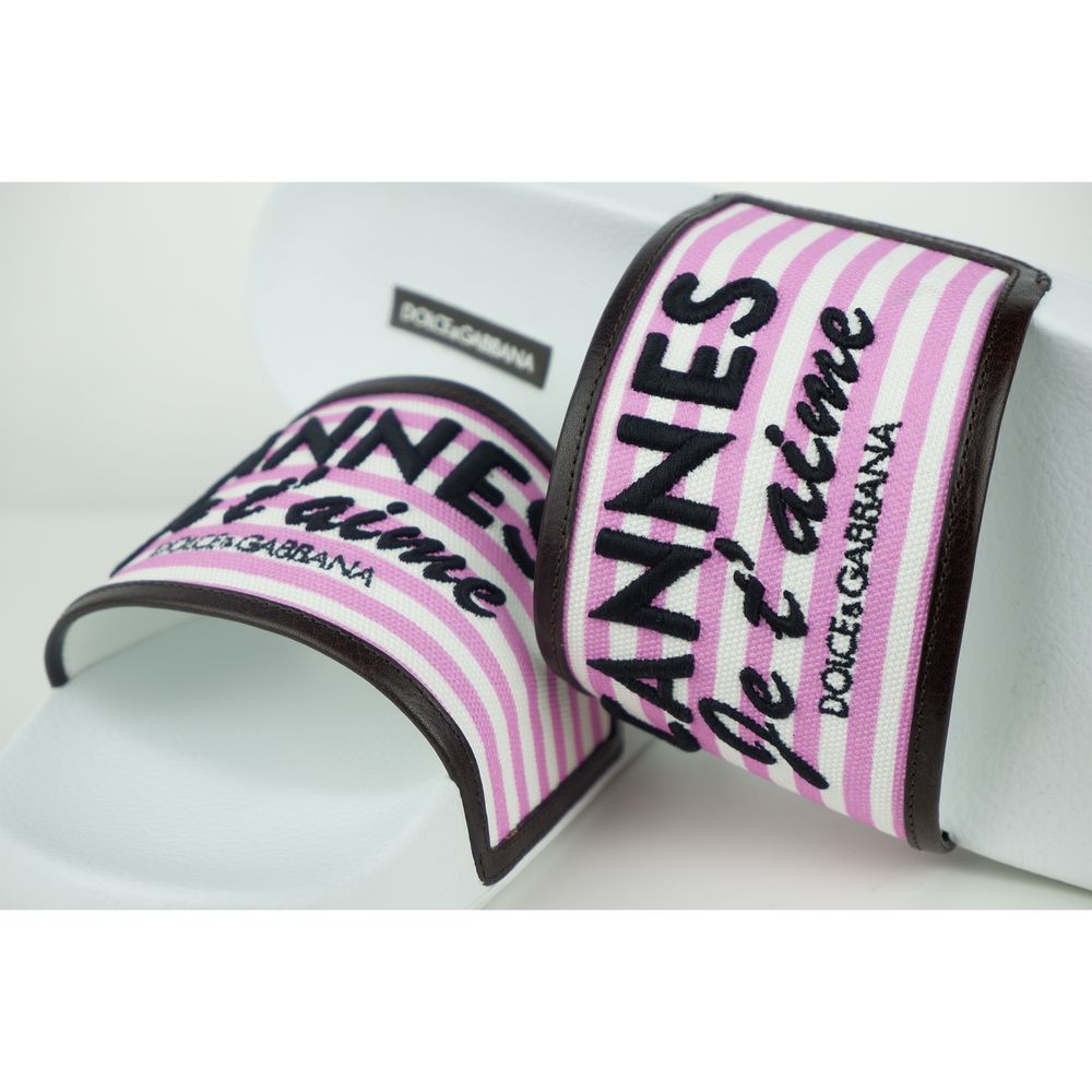 Dolce & Gabbana Elegant White Canvas & Leather Slippers