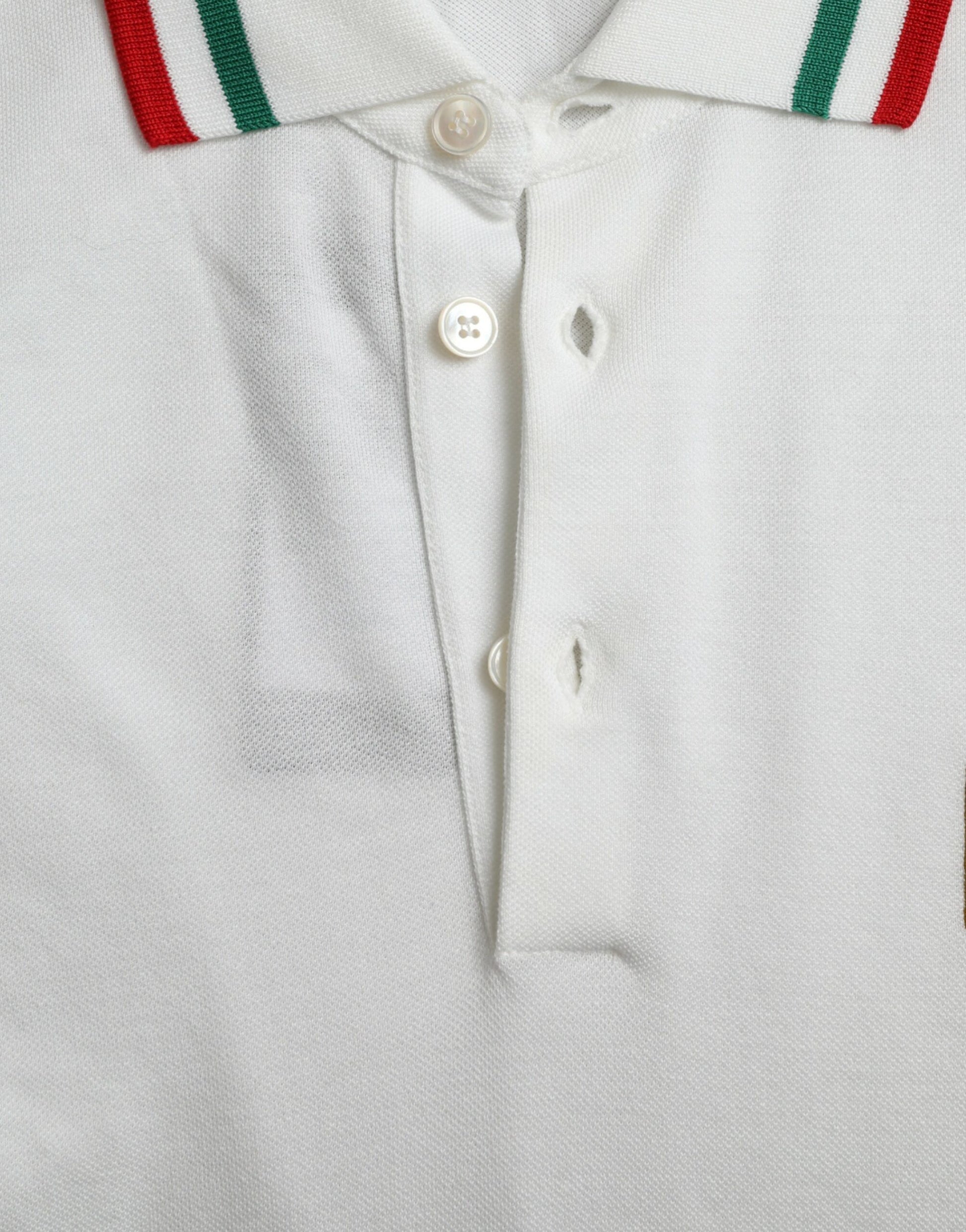 Discover the epitome of Italian luxury with this impeccable Dolce & Gabbana cotton polo. Distinguished by its crisp white hue and refined with a sleek DG logo, this t-shirt elevates your style with a sophisticated collared neck and short sleeves. Crafted from the finest materials, it is an authentic piece that carries the brand’s signature quality and aesthetic. Perfect for any occasion that calls for a touch of elegance.
