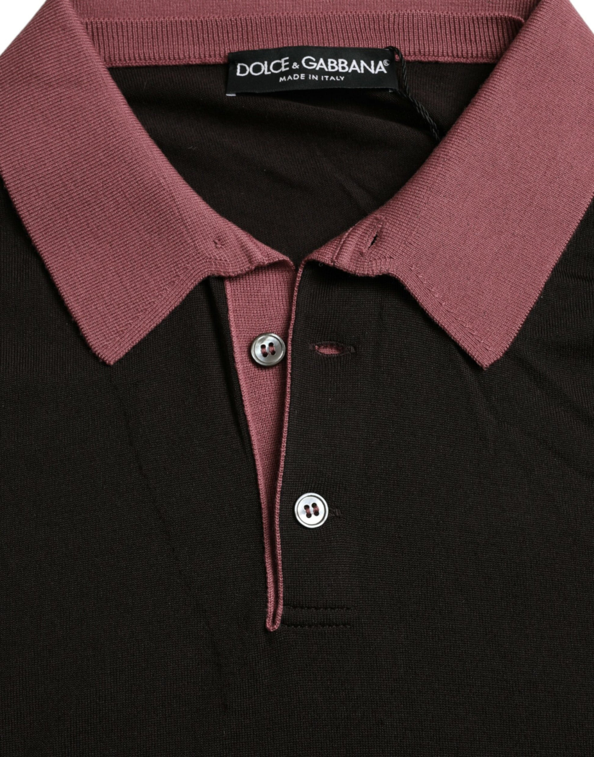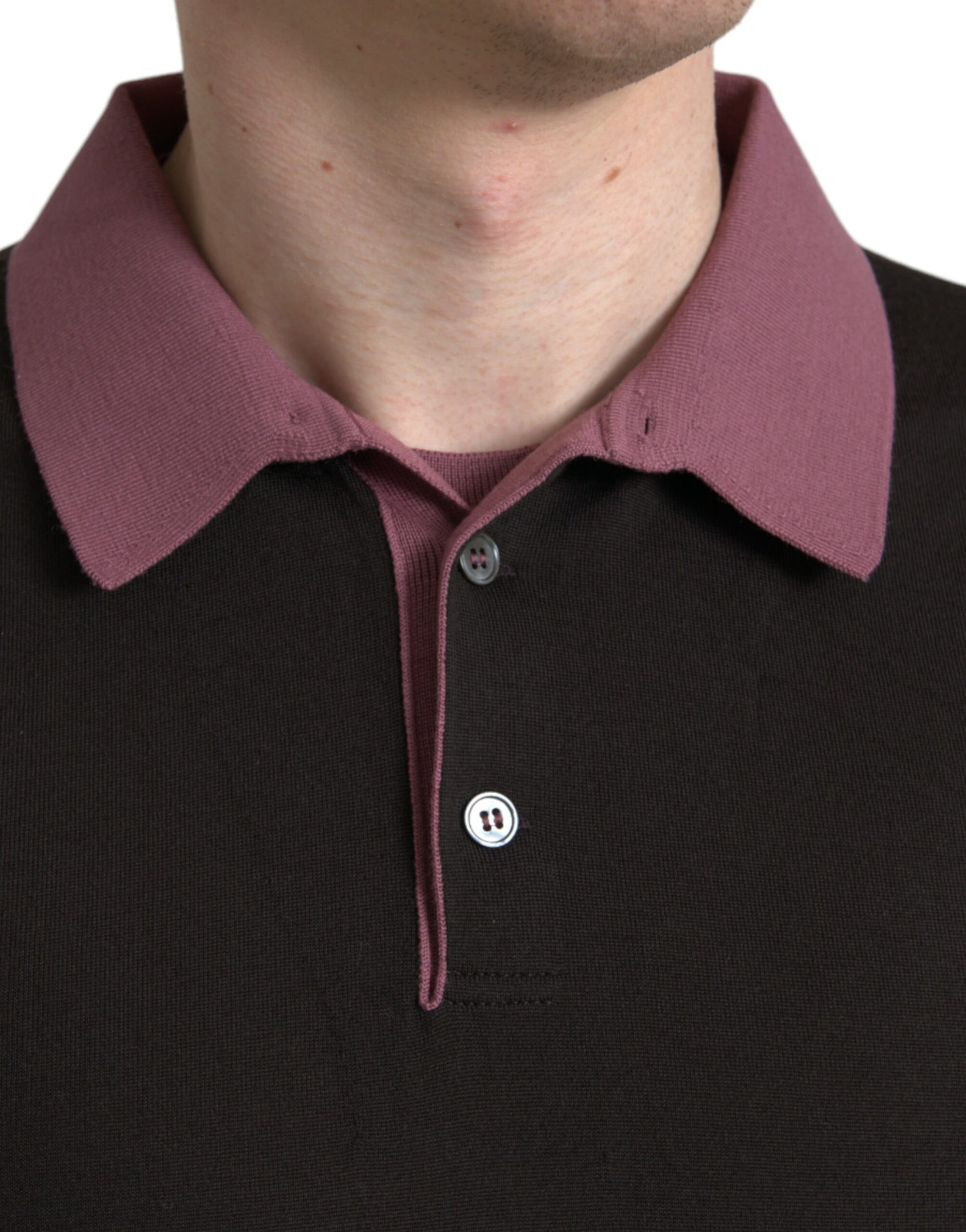 Discover the epitome of luxury knitwear with this stunning 100% Authentic Dolce & Gabbana pullover sweater. Impeccably crafted from the finest 100% Virgin Wool, this exquisite piece is not only a testament to timeless style but also a cozy addition to your wardrobe. The sweater showcases a classic collared neck and long sleeves, effortlessly combining elegance with comfort. Made in Italy, it features a sophisticated brown hue complemented by subtle pink undertones, perfect for those who appreciate understated luxury.