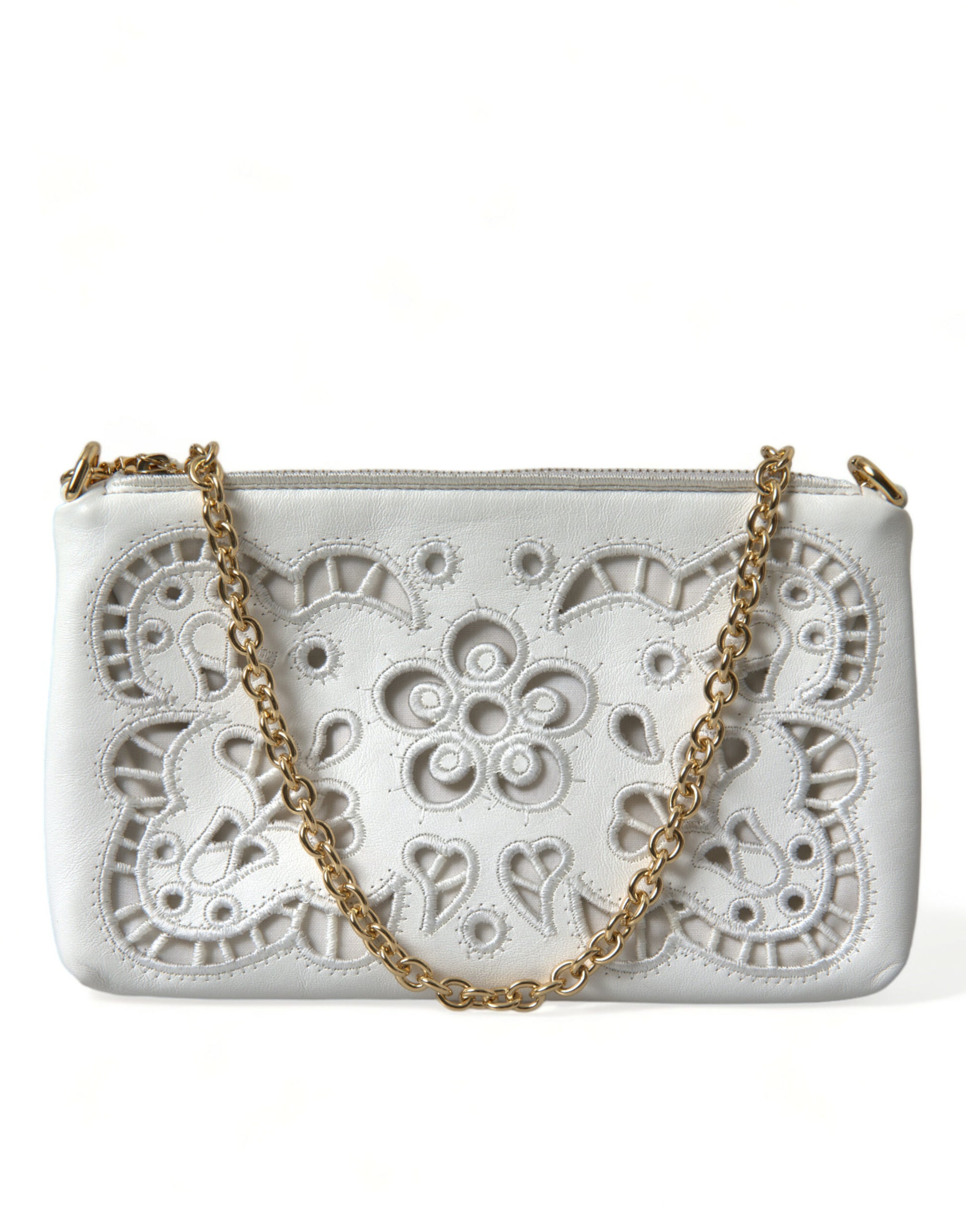 Dolce & Gabbana Embroidered Floral Leather Clutch with Chain Strap