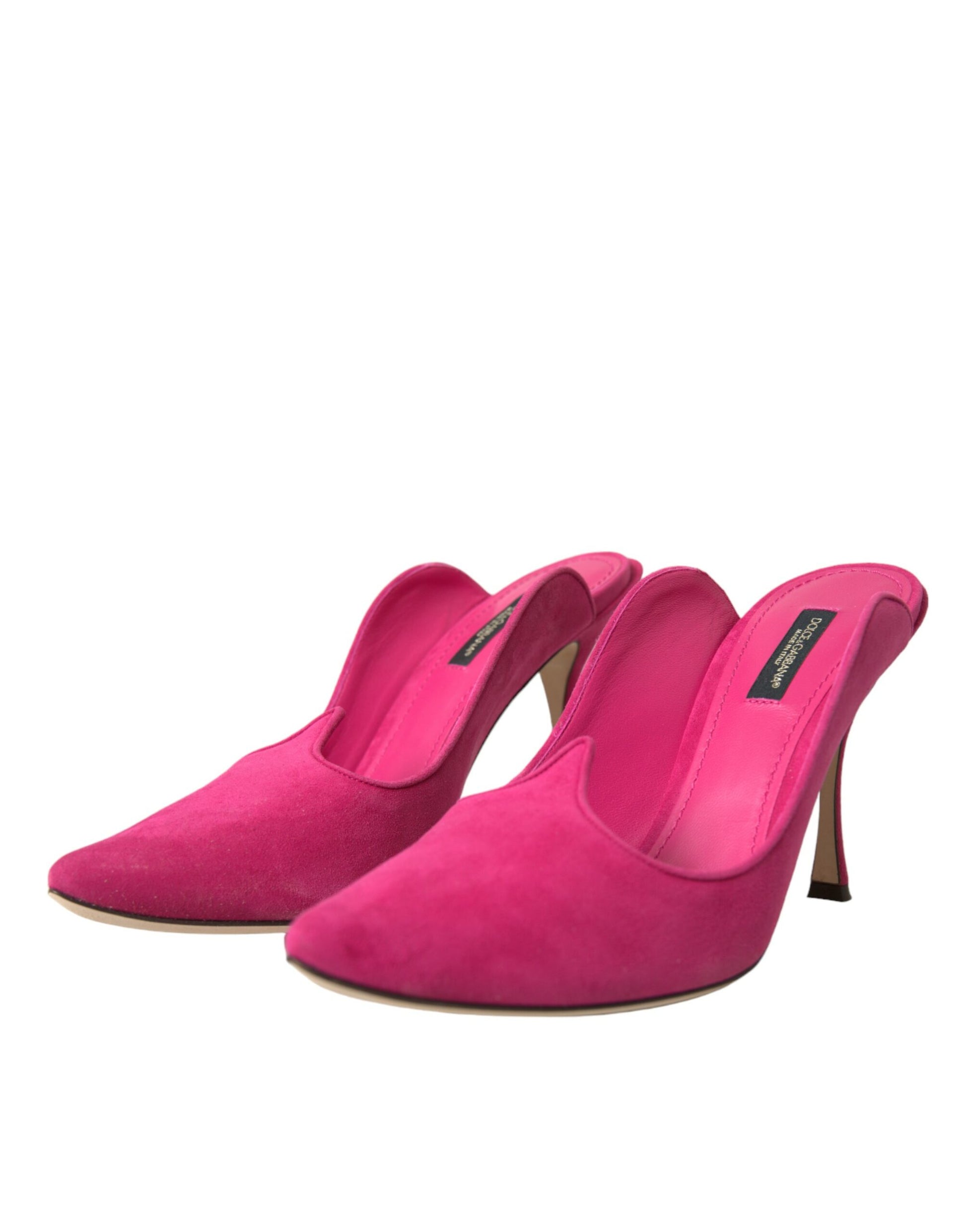 Dolce & Gabbana Fuchsia Suede Leather Mules Sandals Shoes