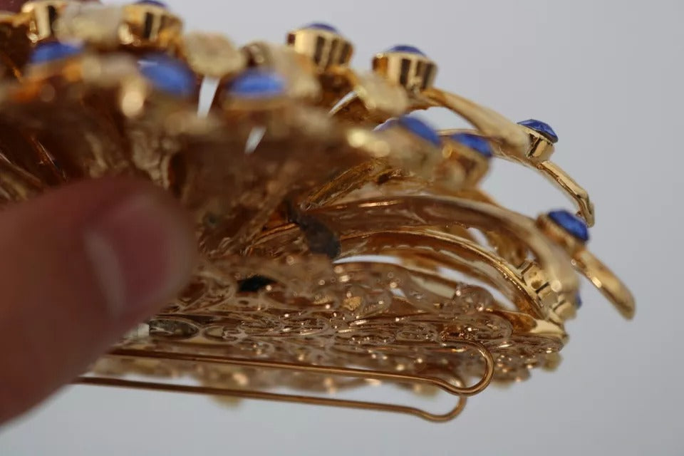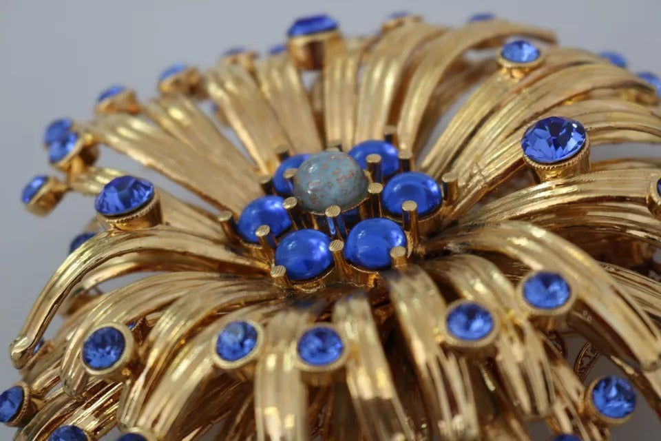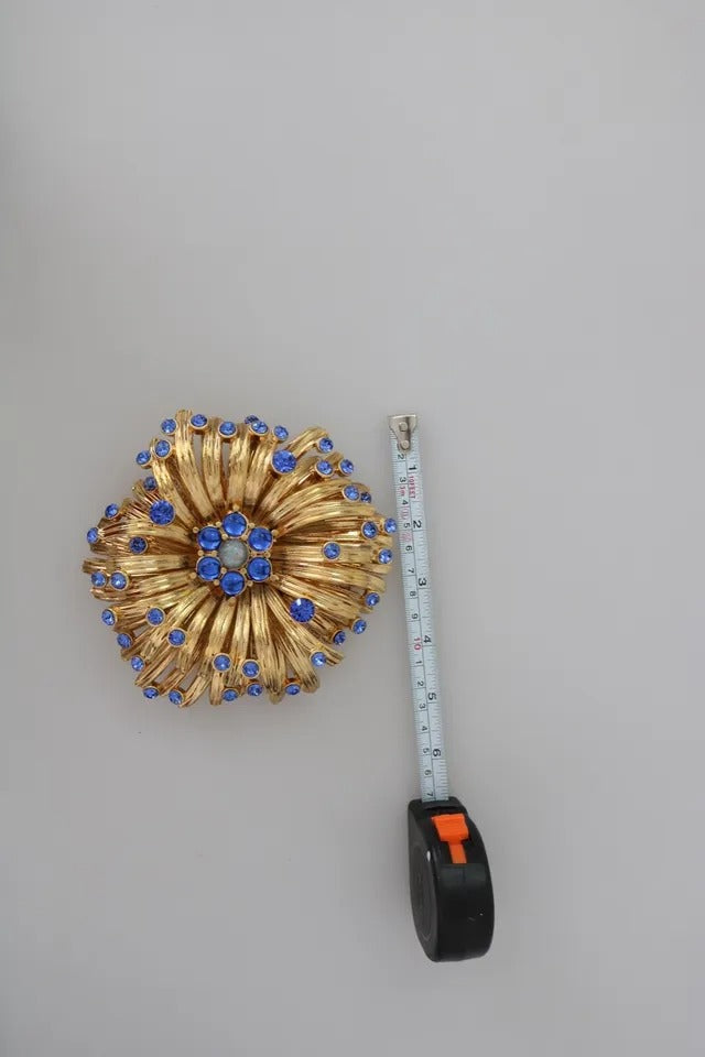 Dolce & Gabbana Gold Brass Blue Crystals Embellished Jewelry Brooch