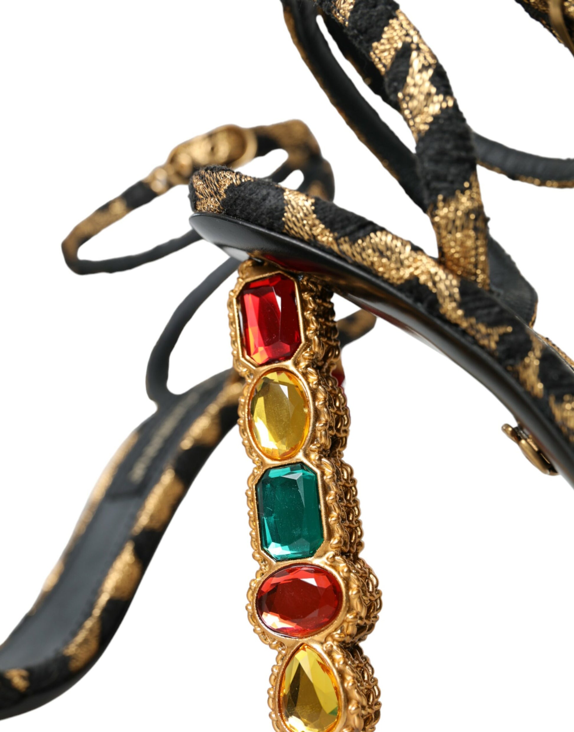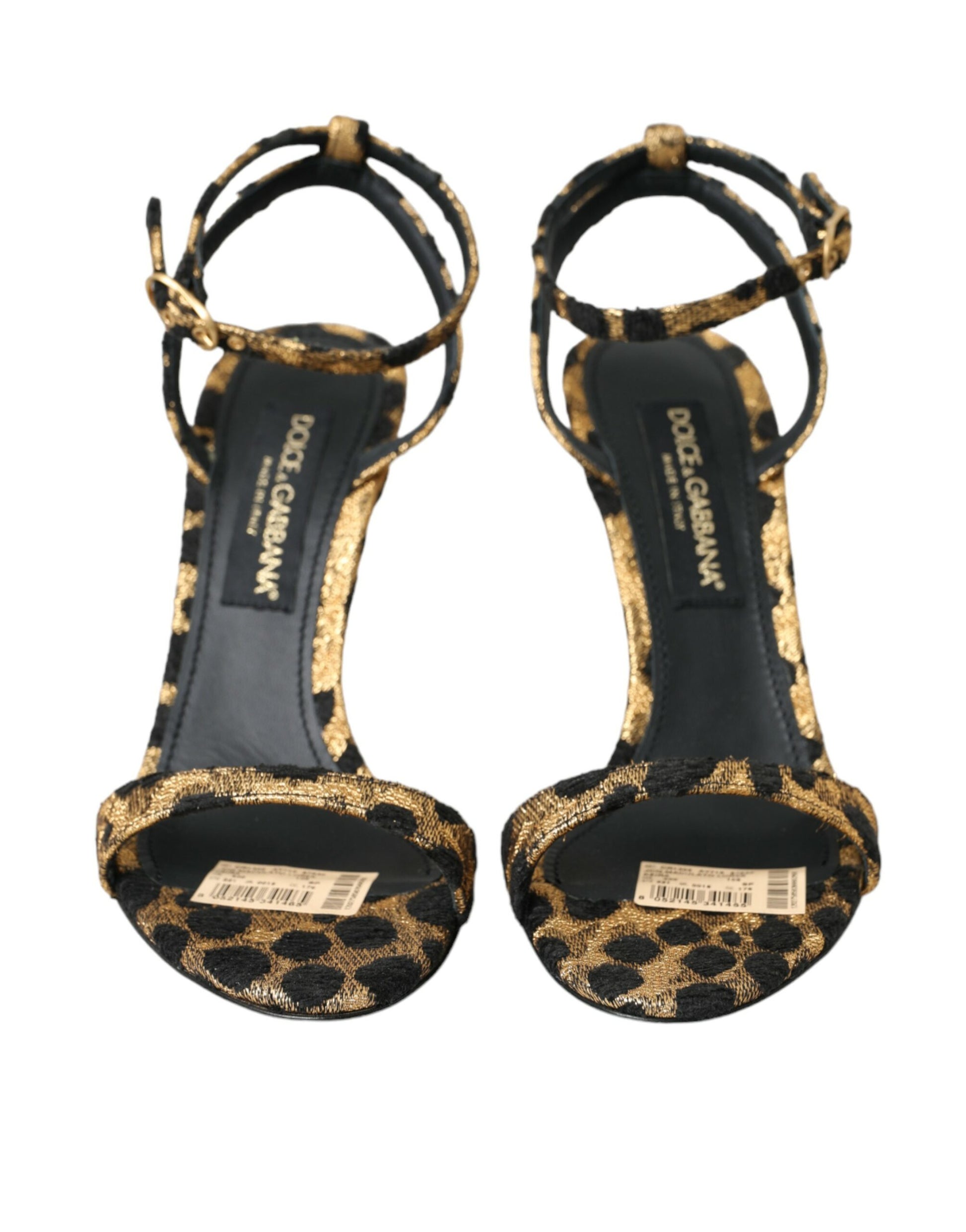 Dolce & Gabbana Gold Leopard Crystals Heels Sandals Shoes