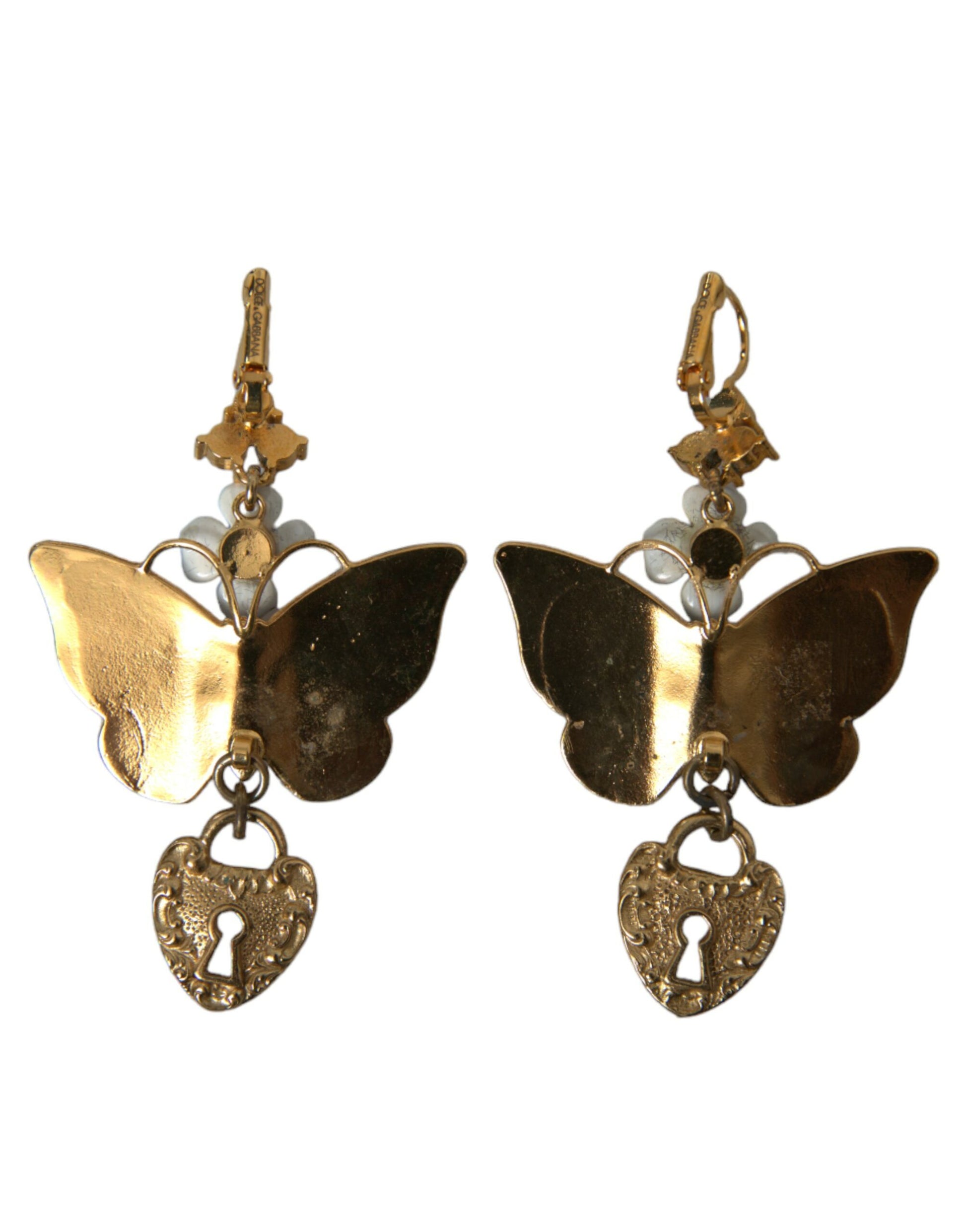 Dolce & Gabbana Gold Purple Crystal Butterfly Heart Locket Earrings