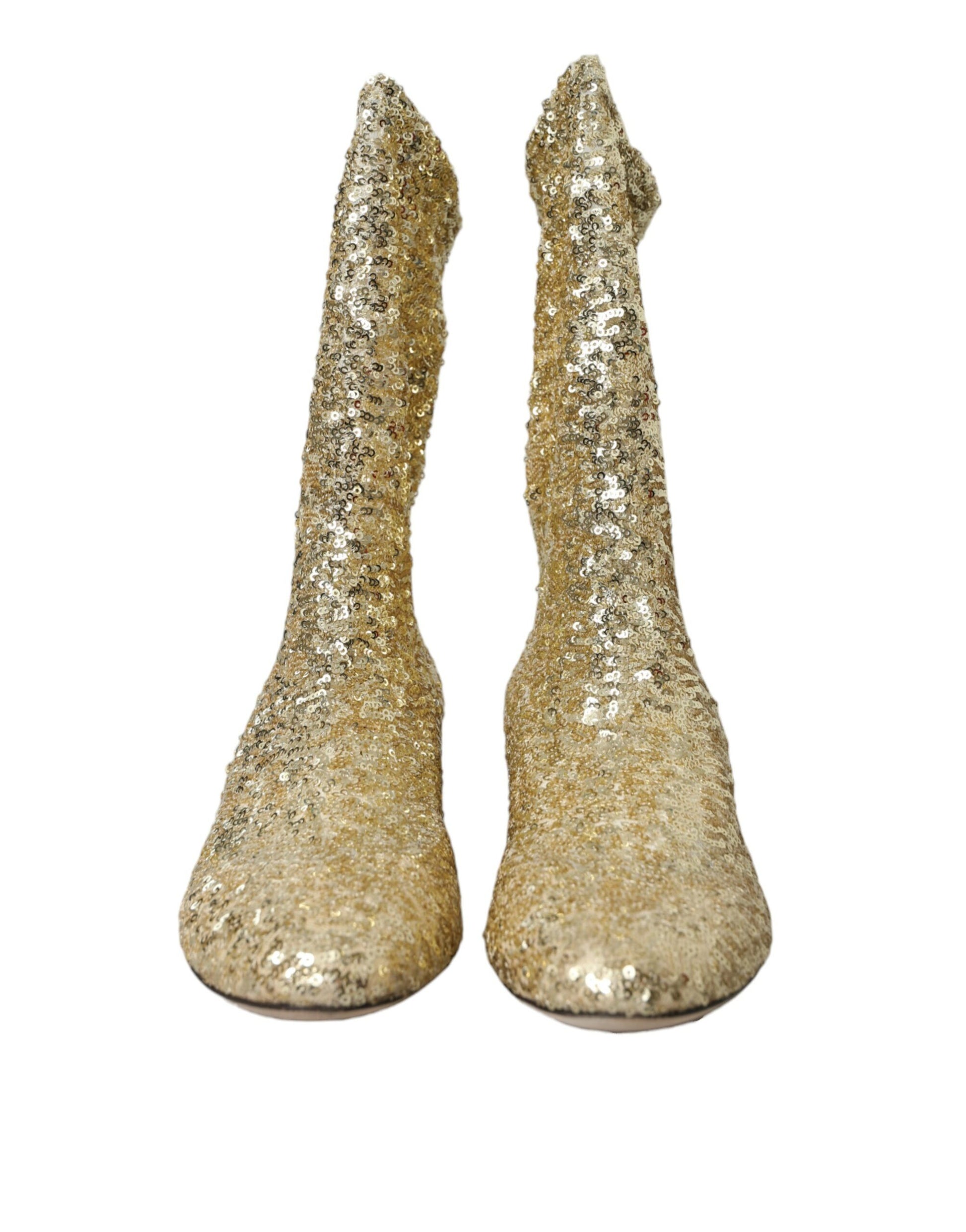 Dolce & Gabbana Gold Sequined Short Boots Stretch Shoes