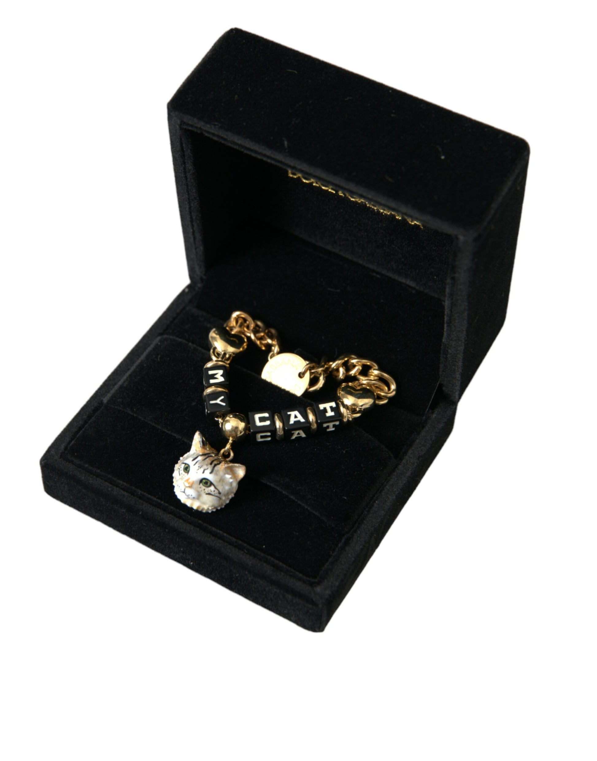 Dolce & Gabbana Gold Tone Brass Chain MY CAT Heart Bracelet