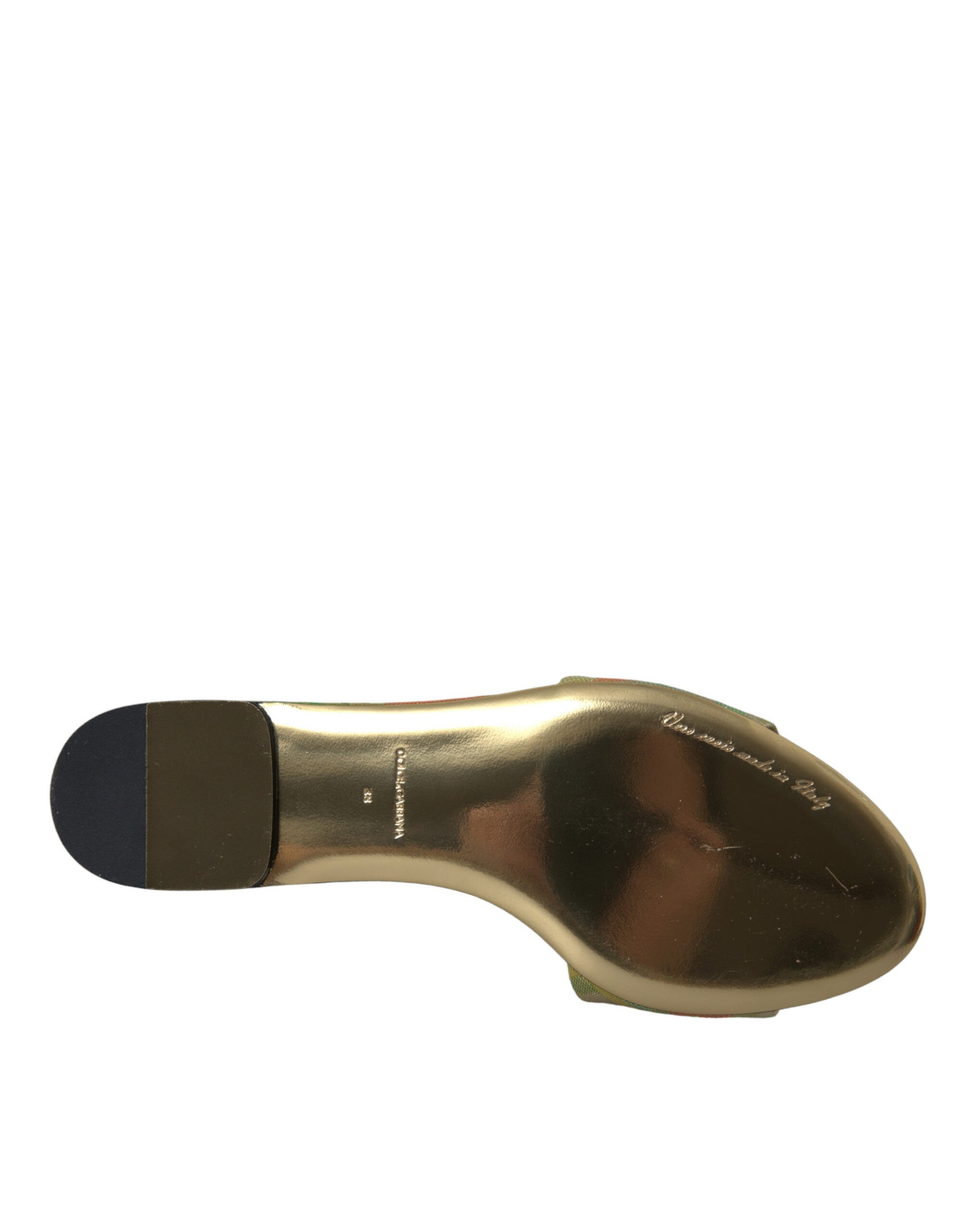 Dolce & Gabbana Green Crystal Jacquard Flats Sandals Shoes