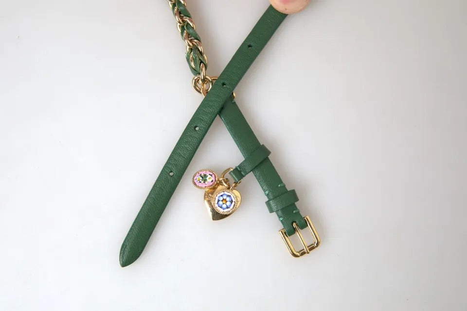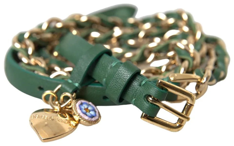 Dolce & Gabbana Green Embellished Chain Gold Buckle Belt