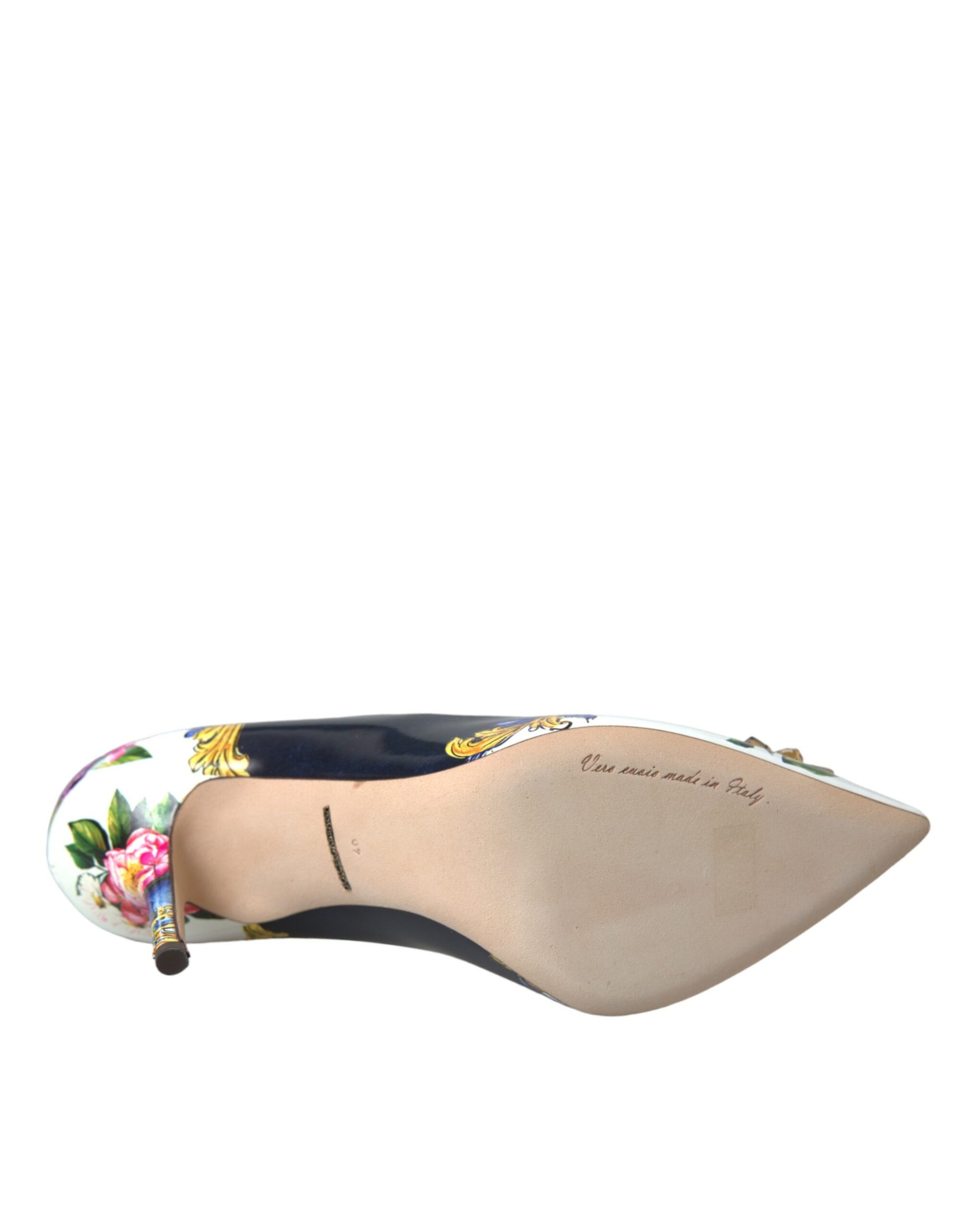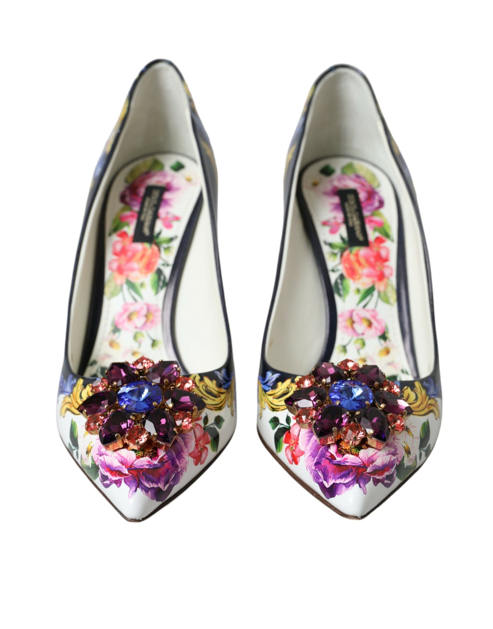Dolce & Gabbana Multicolor Floral Leather Crystal Heels Pumps Shoes