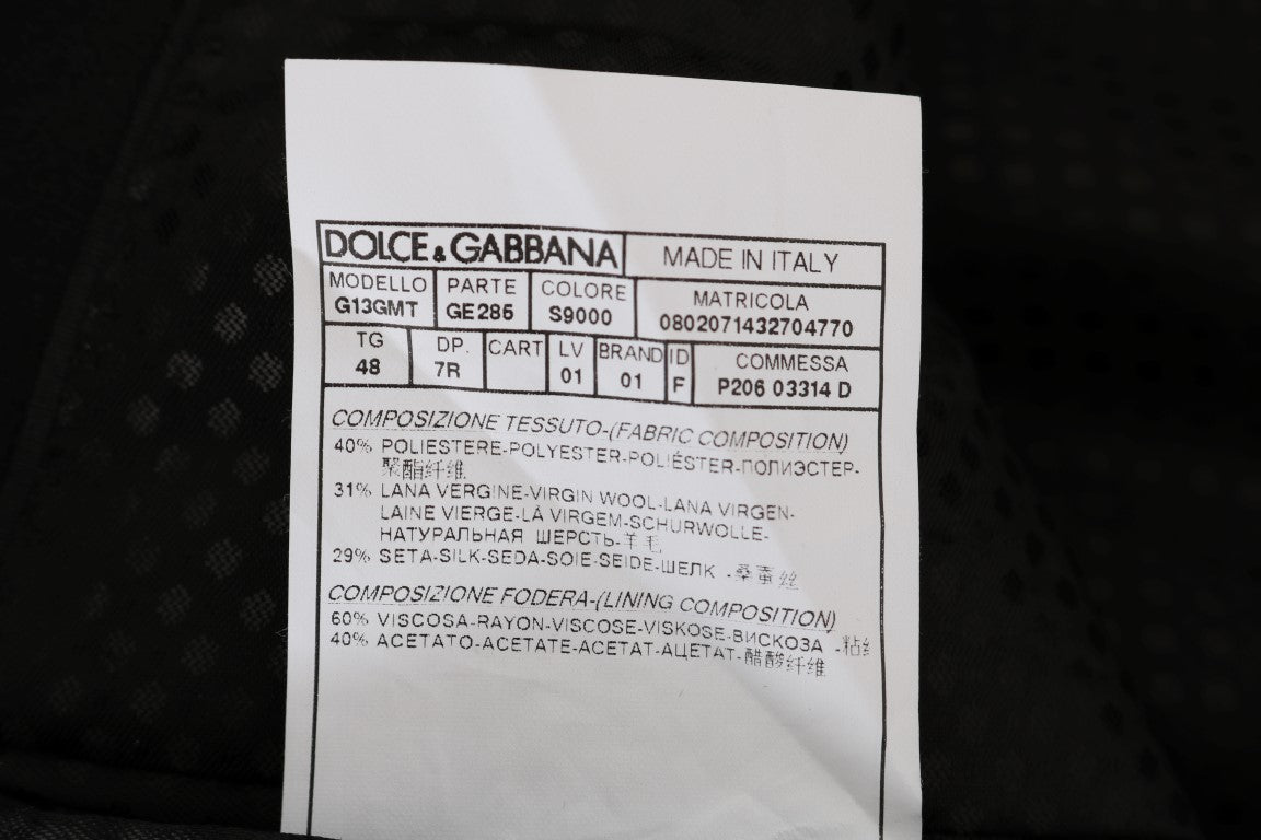 Step out in style with this striking Dolce & Gabbana blazer, a perfect blend of elegance and distinctive design. Its slim fit cut offers a sharp silhouette, while the eclectic black background accented with blue and brown circles adds a dash of panache to any outfit. Expertly crafted in Italy, this blazer promises not just premium looks but unparalleled comfort, making it a rare gem in high fashion craftsmanship. Complete with practical details such as multiple pockets and a rear vent for ease of movement, this jacket bears the iconic logo details, affirming its authentic and luxurious heritage.