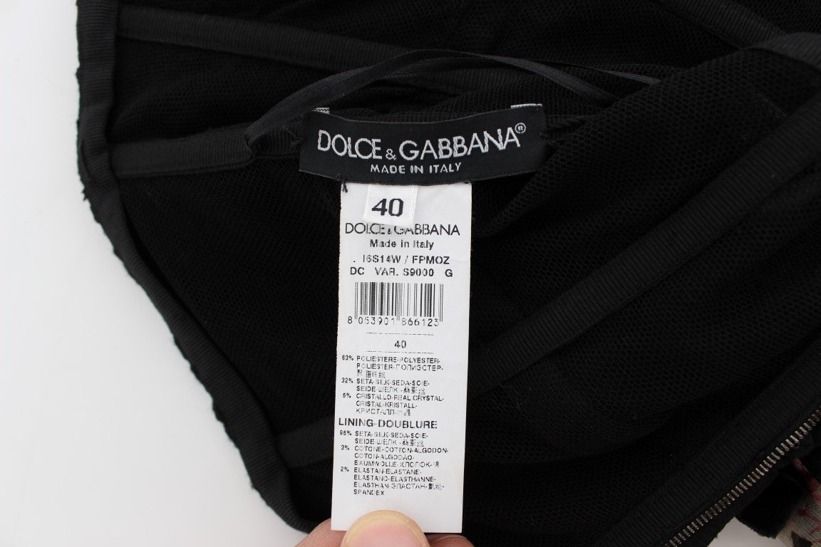 Dolce & Gabbana Multicolor Rose & Key Print Maxi Dress with Crystal
