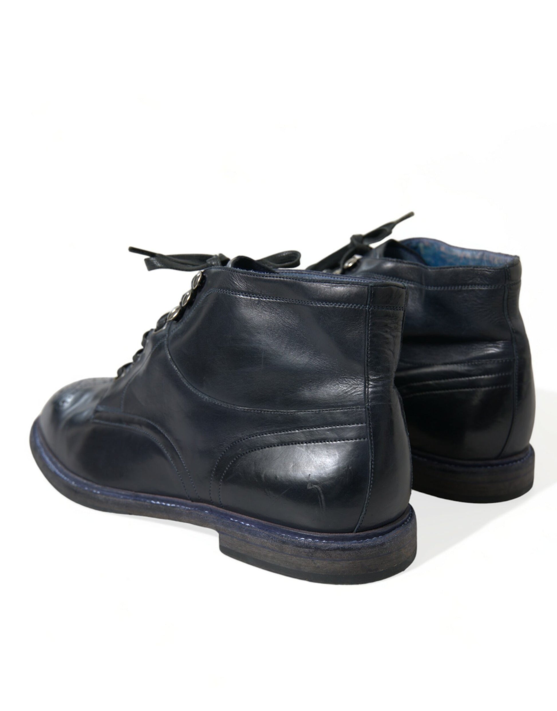 Dolce & Gabbana Navy Blue Leather Ankle Boots