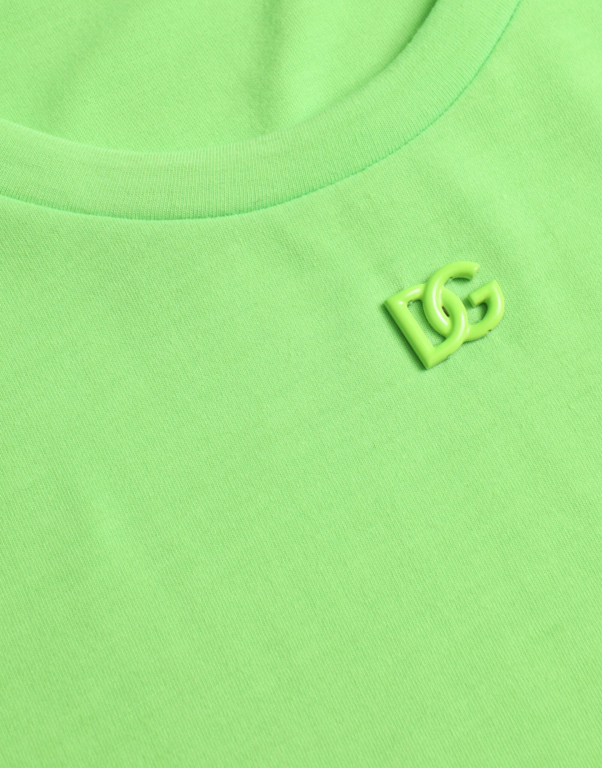 Dolce & Gabbana Neon Green Embossed Logo Crew Neck T-shirt