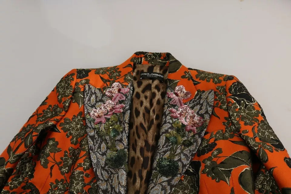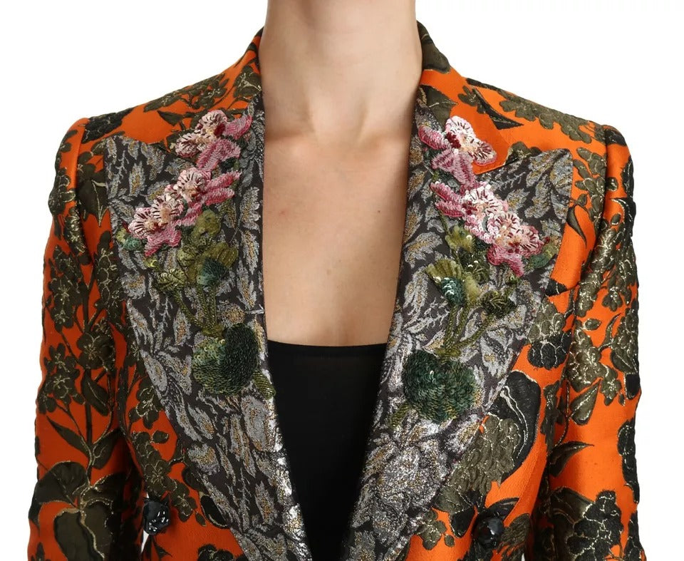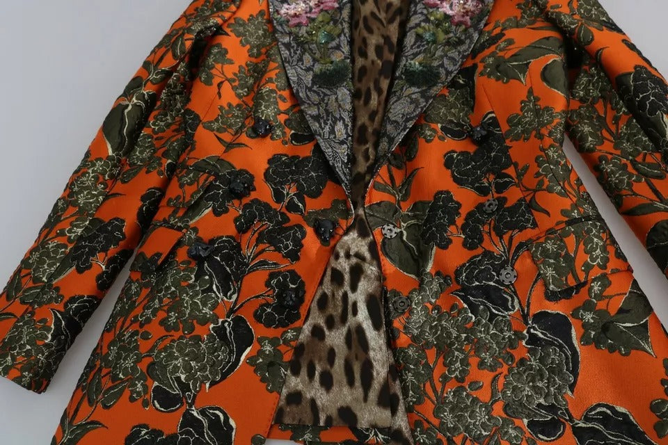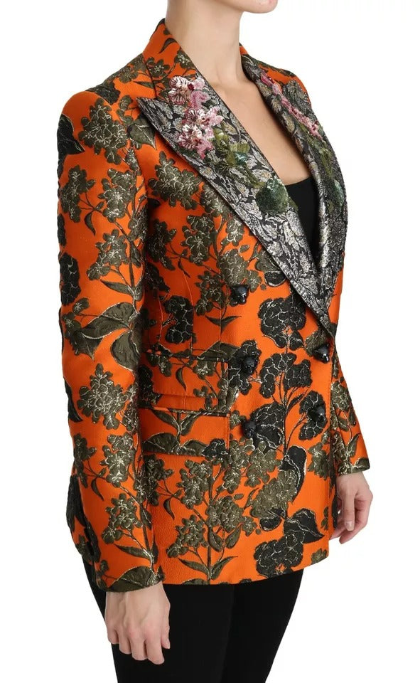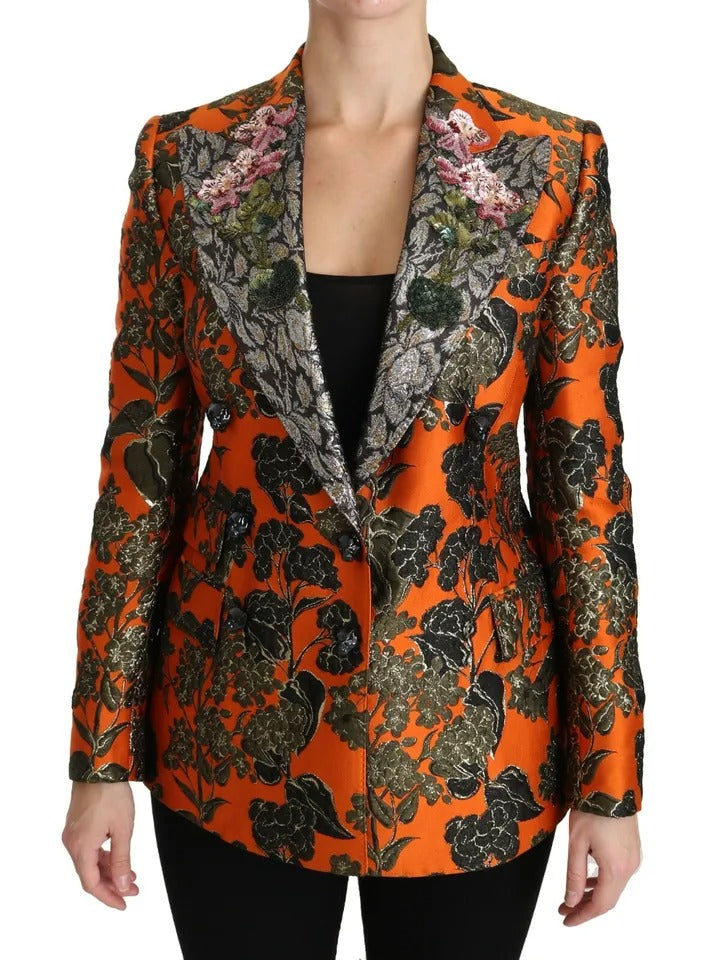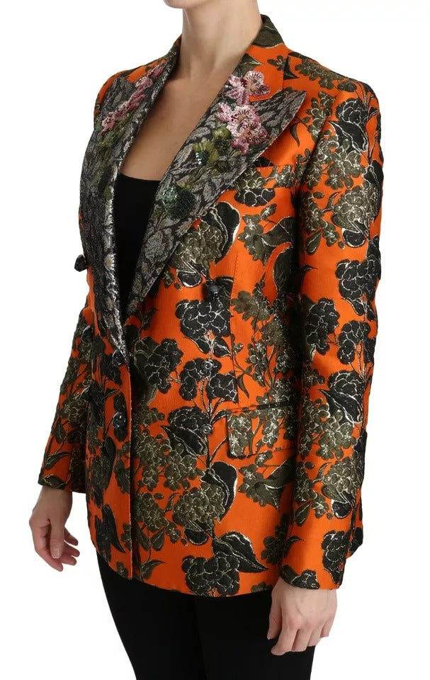 Dolce & Gabbana Orange Floral Brocade Coat Blazer Jacket