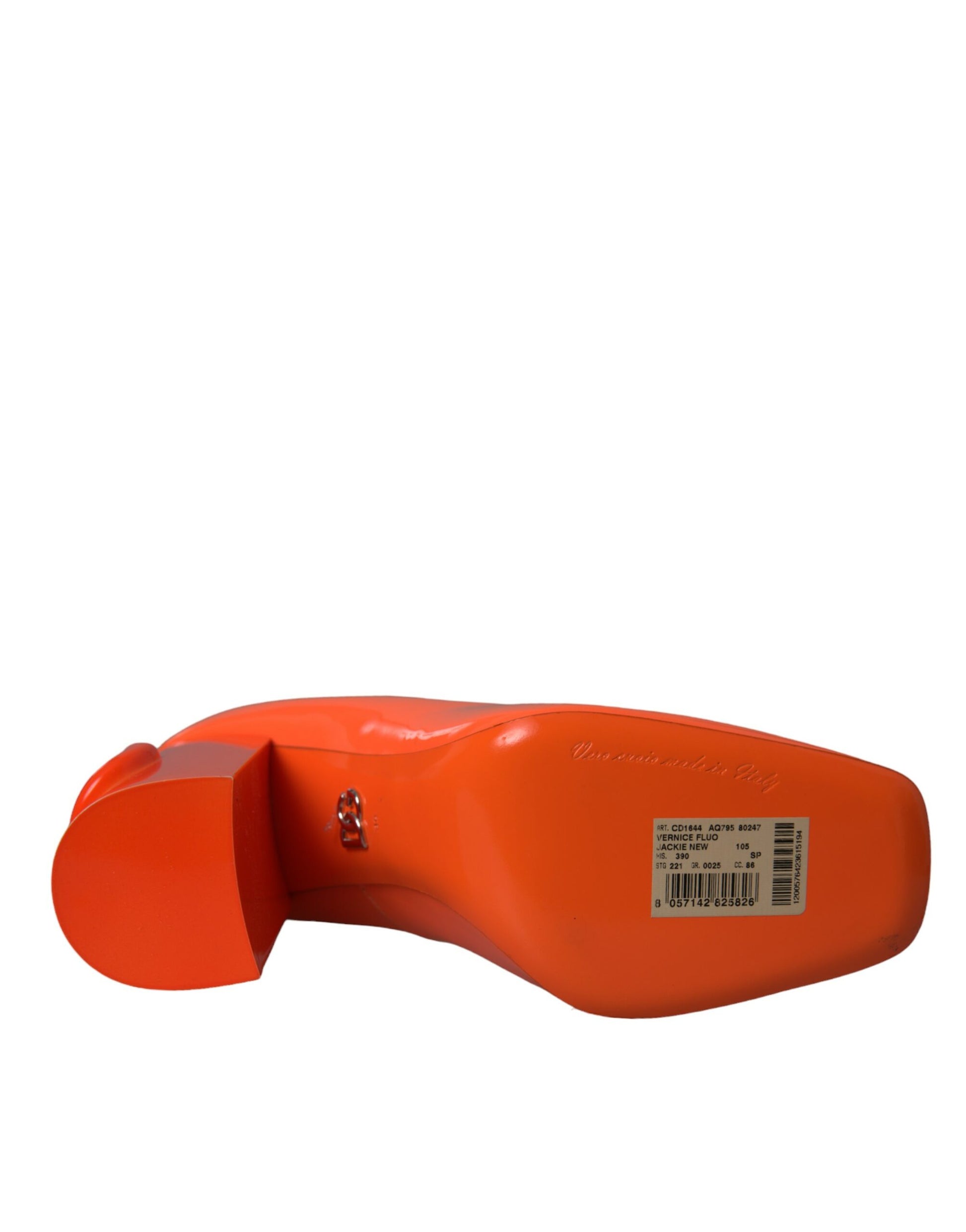 Dolce & Gabbana Orange Patent Leather Logo Heels Pumps Shoes