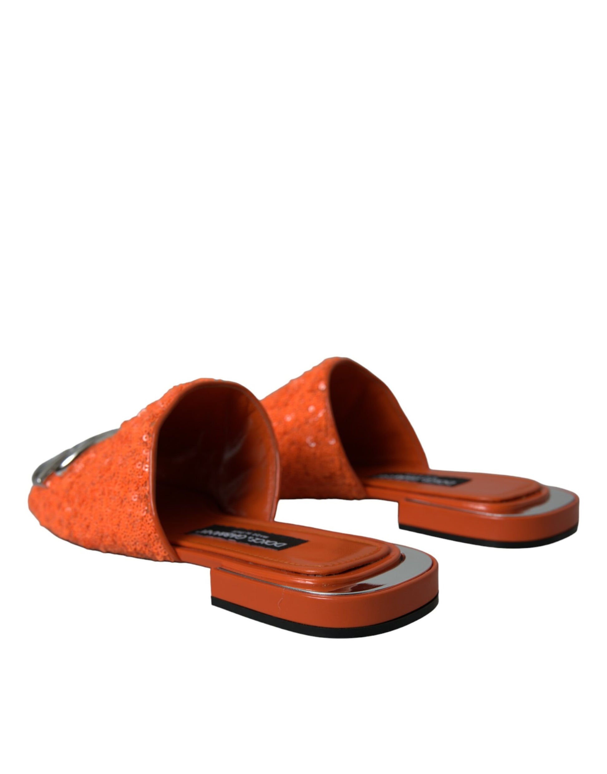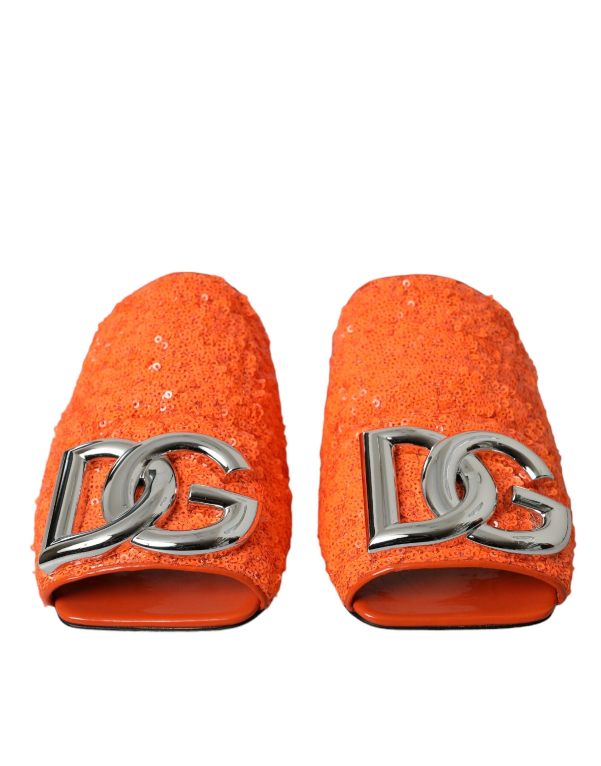 Dolce & Gabbana Orange Sequin Logo Slides Sandals Shoes