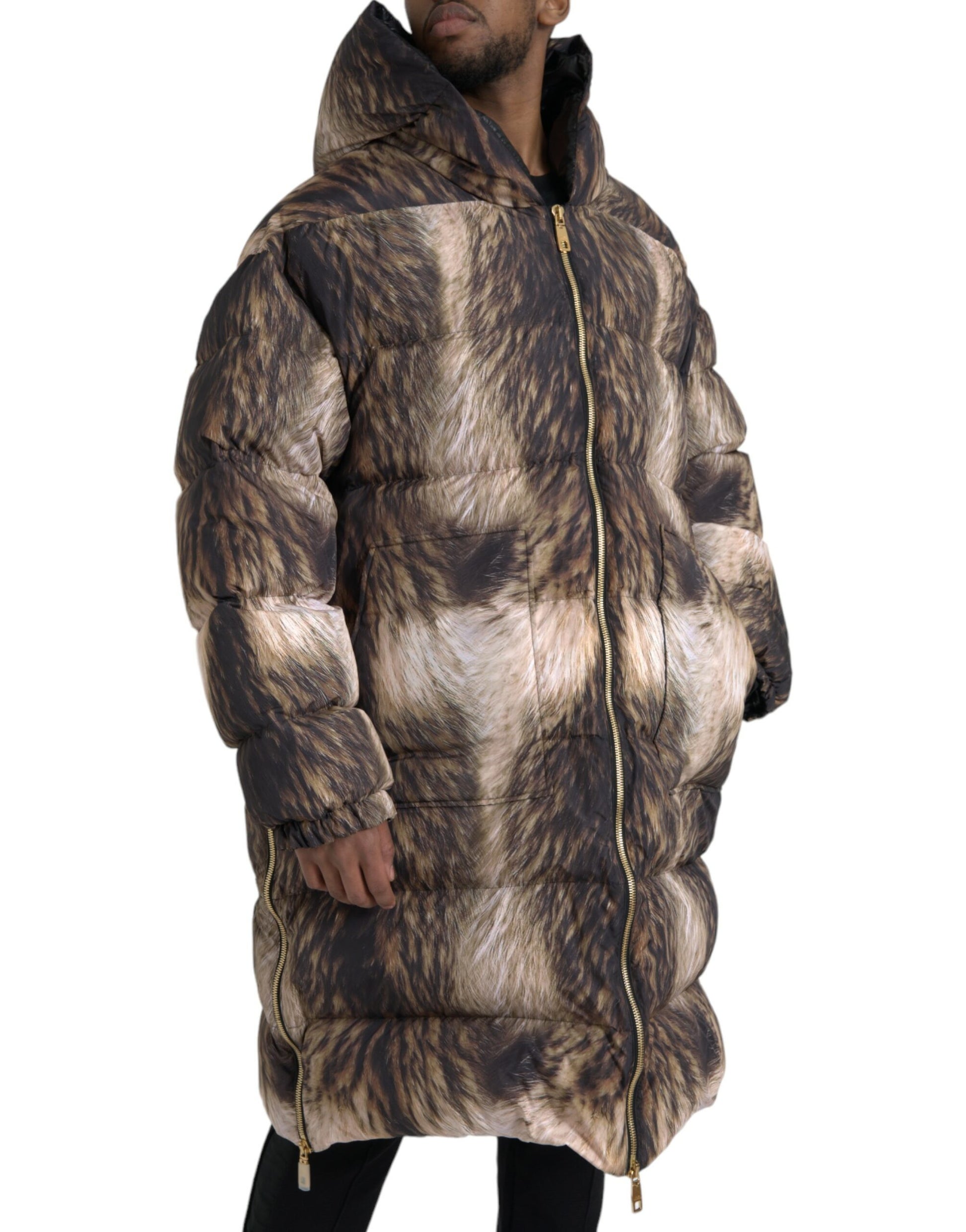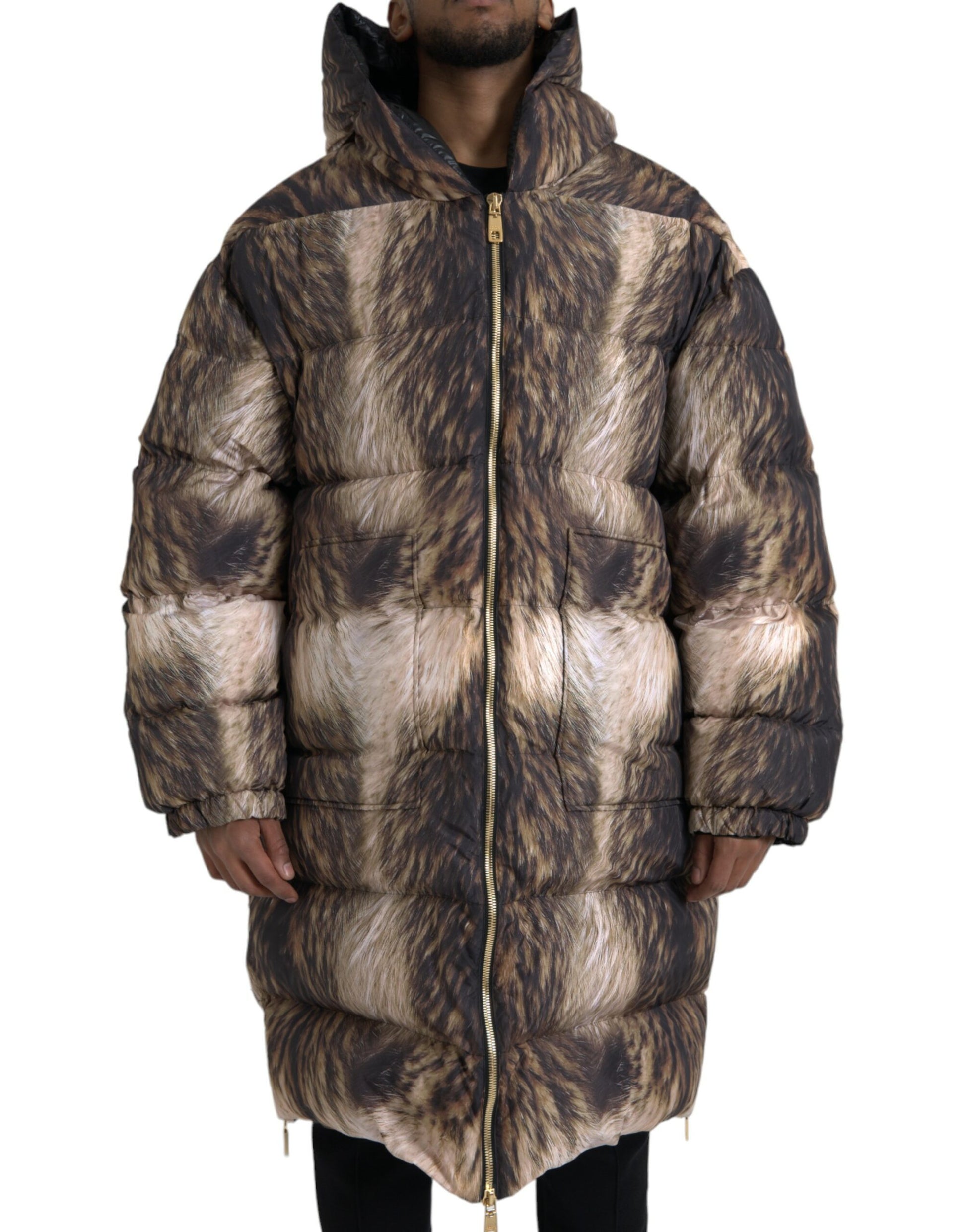 Dolce & Gabbana Parka Brown Full Zip Hooded Long Coat Jacket