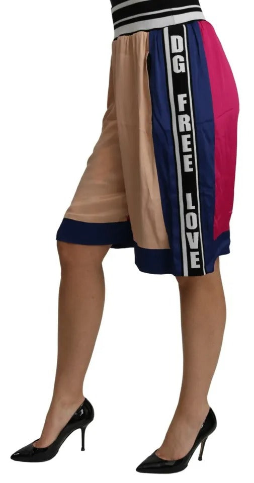 Dolce & Gabbana Pink Blue High Waist Casual Sweatshorts Shorts