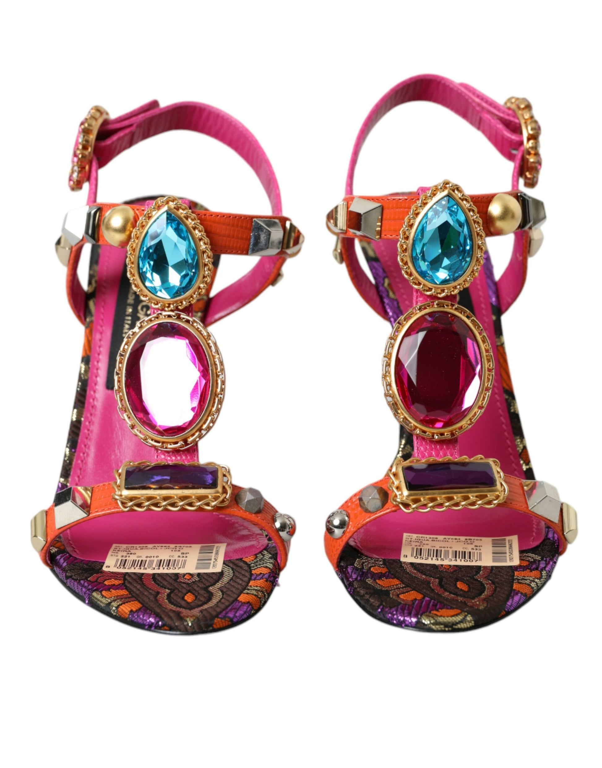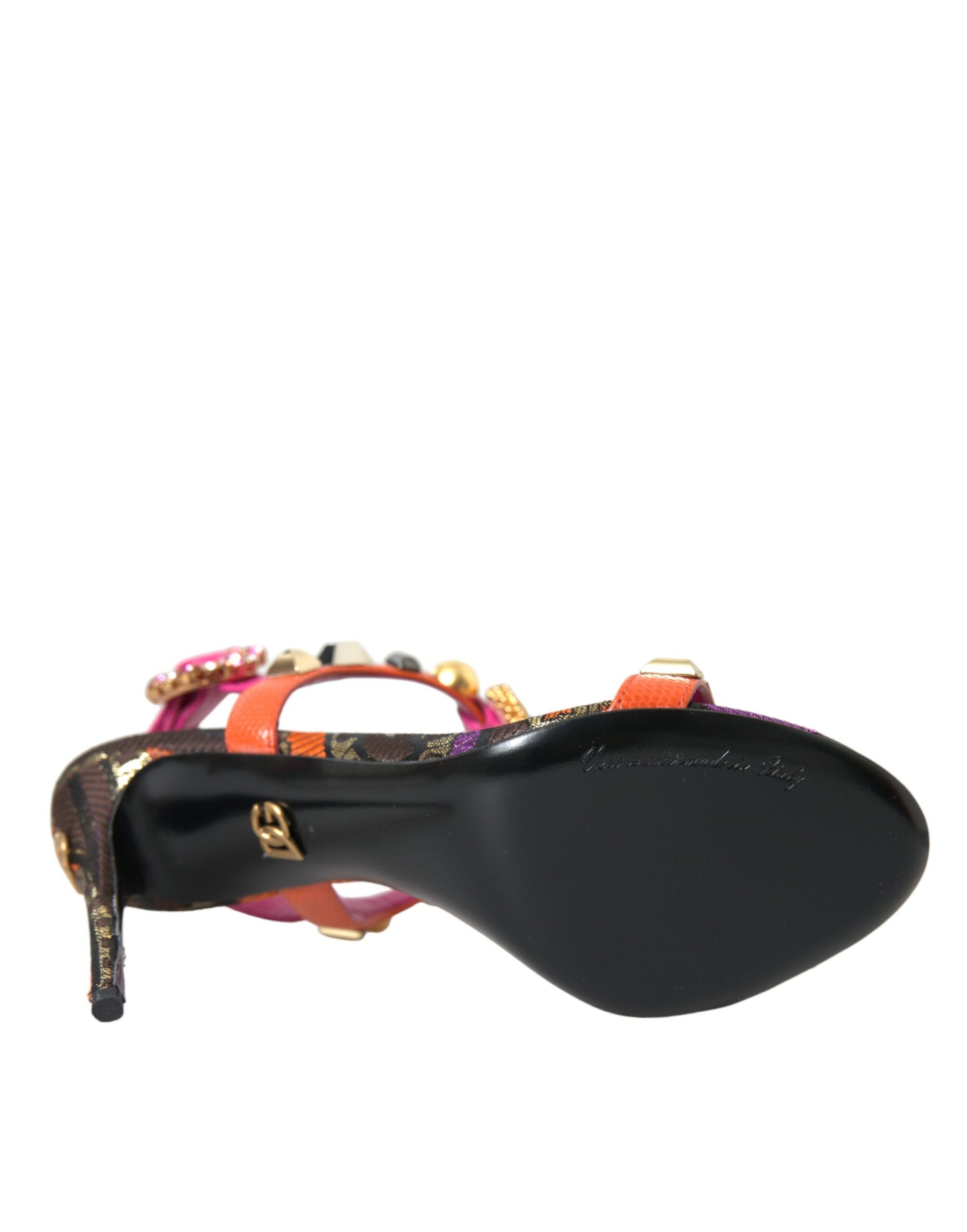 Dolce & Gabbana Pink Jacquard Crystals Sandals Heels Shoes