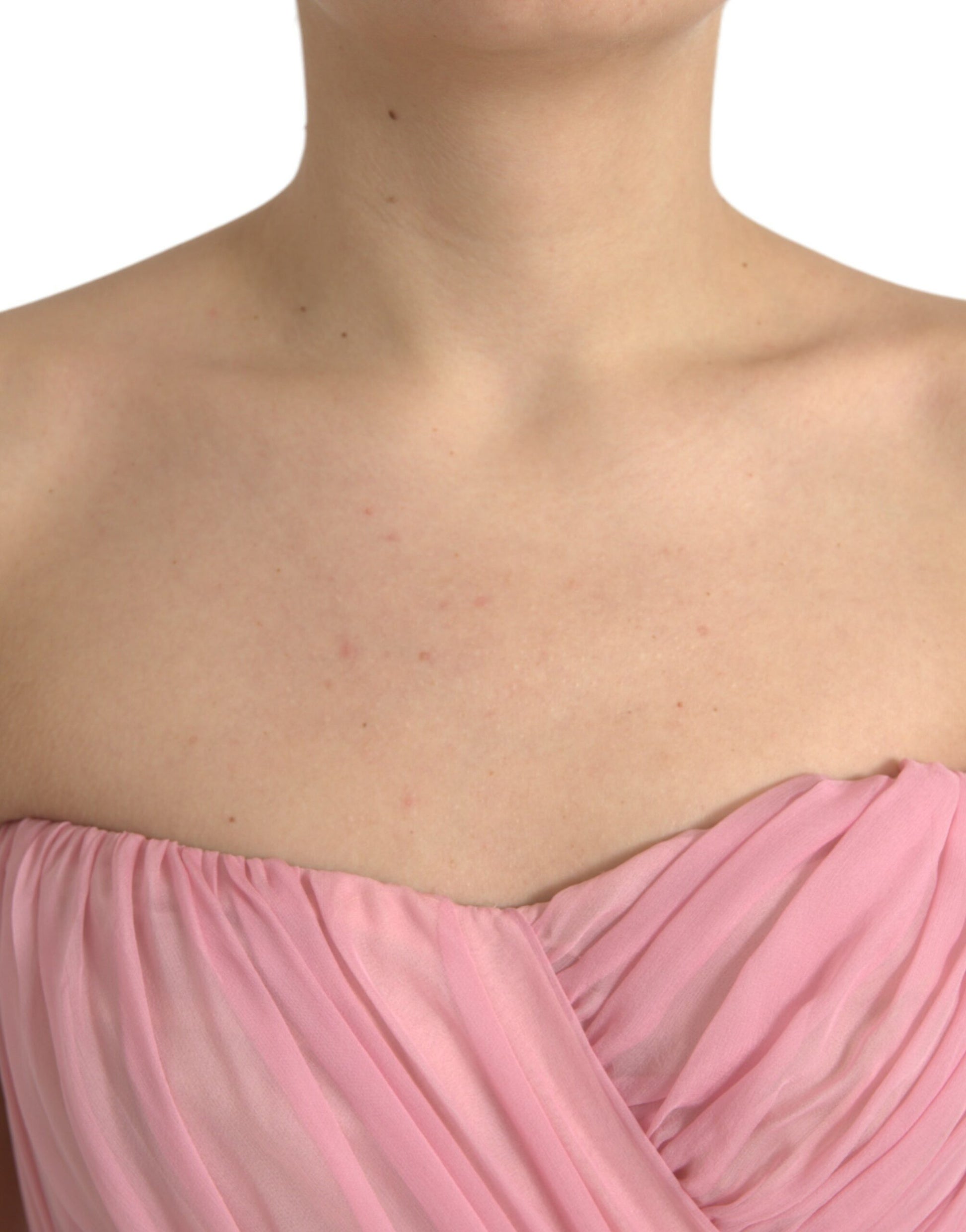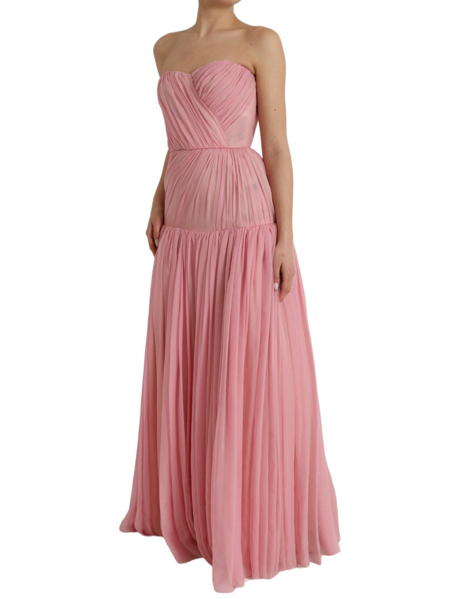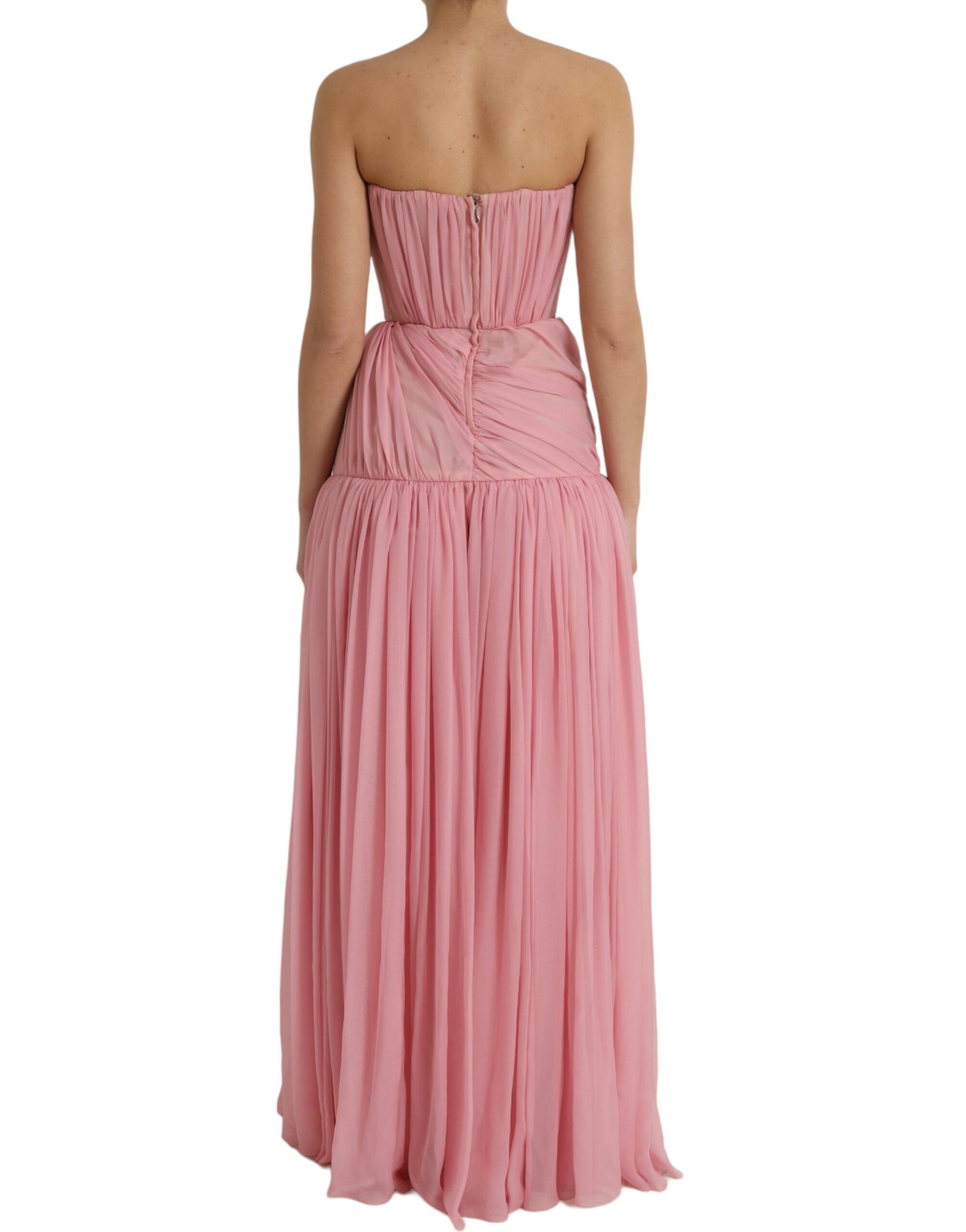 Dolce & Gabbana Pink Silk Strapless Maxi A-line Gown Dress