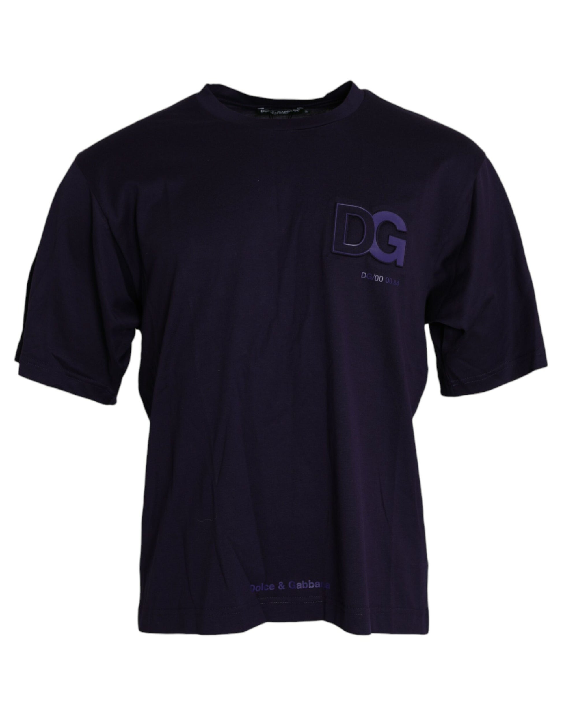 Dolce & Gabbana Purple Logo Patch Short Sleeve Cotton T-shirt