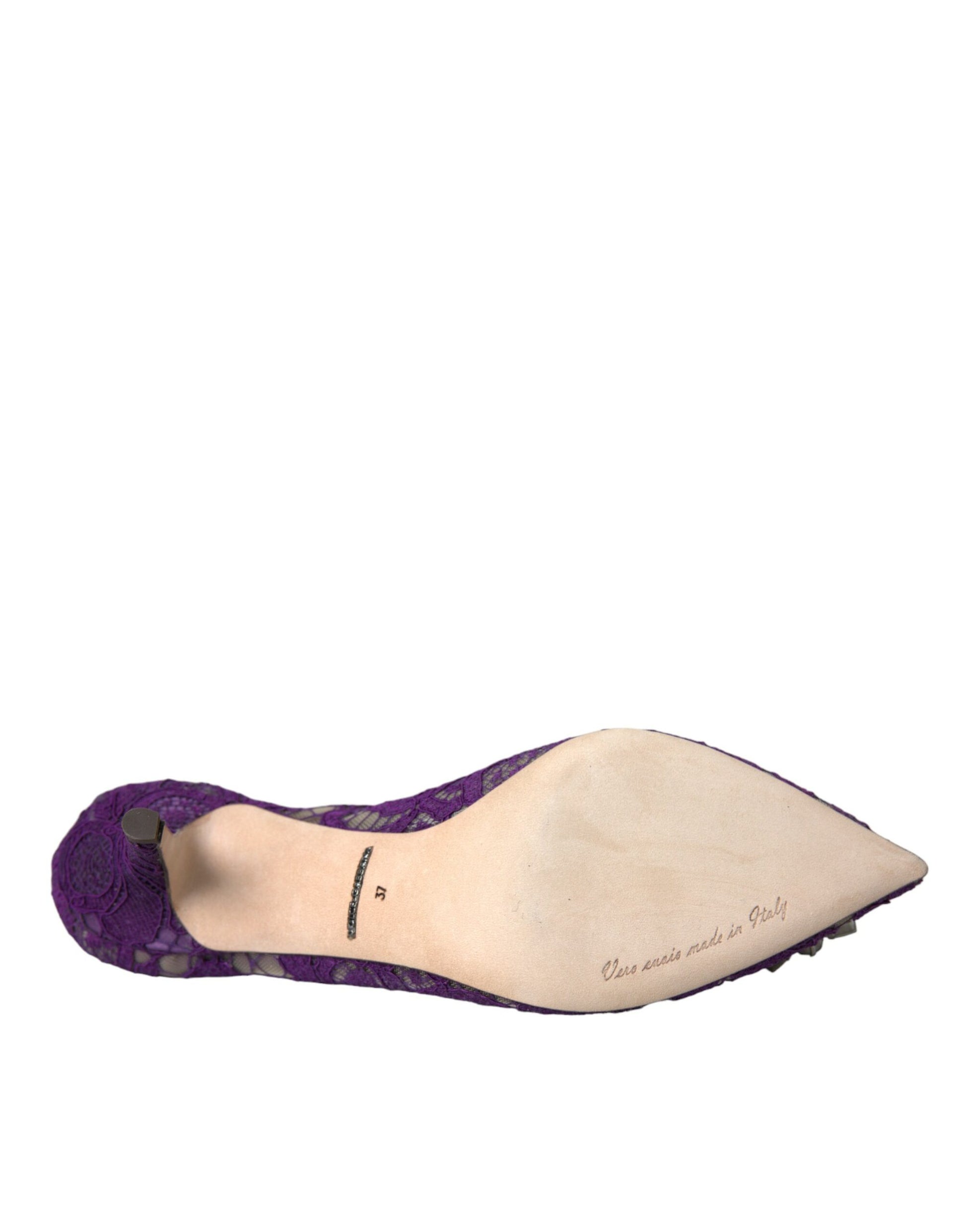 Dolce & Gabbana Purple Taormina Lace Crystal Heel Pumps Shoes