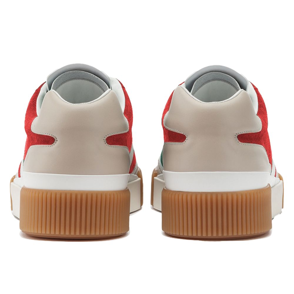 Dolce & Gabbana red suede calfskin and white leather parts low sneaker, rubber logo on the side, white and brown rubber sole