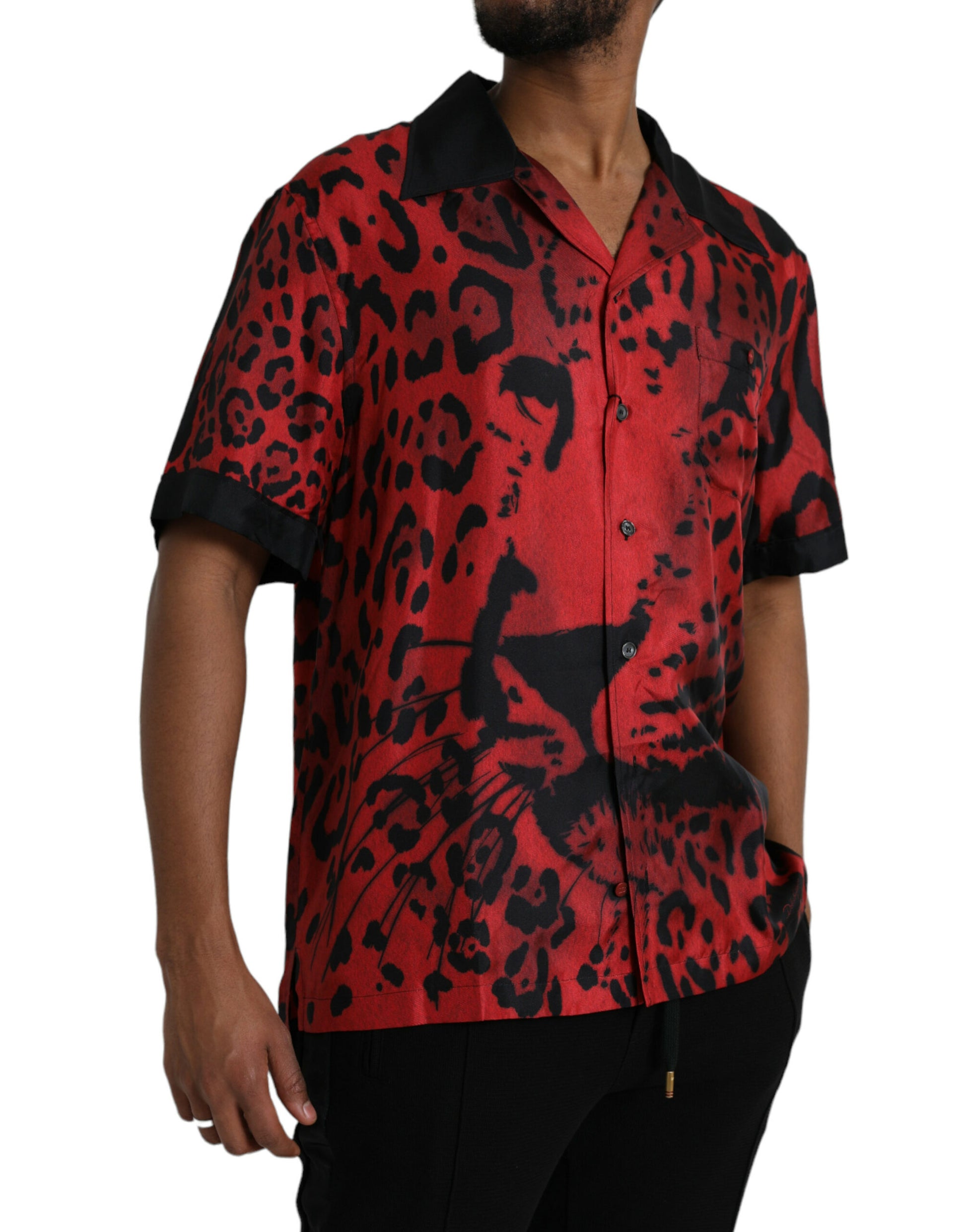 Dolce & Gabbana Red Leopard Silk Button Down Casual Shirt