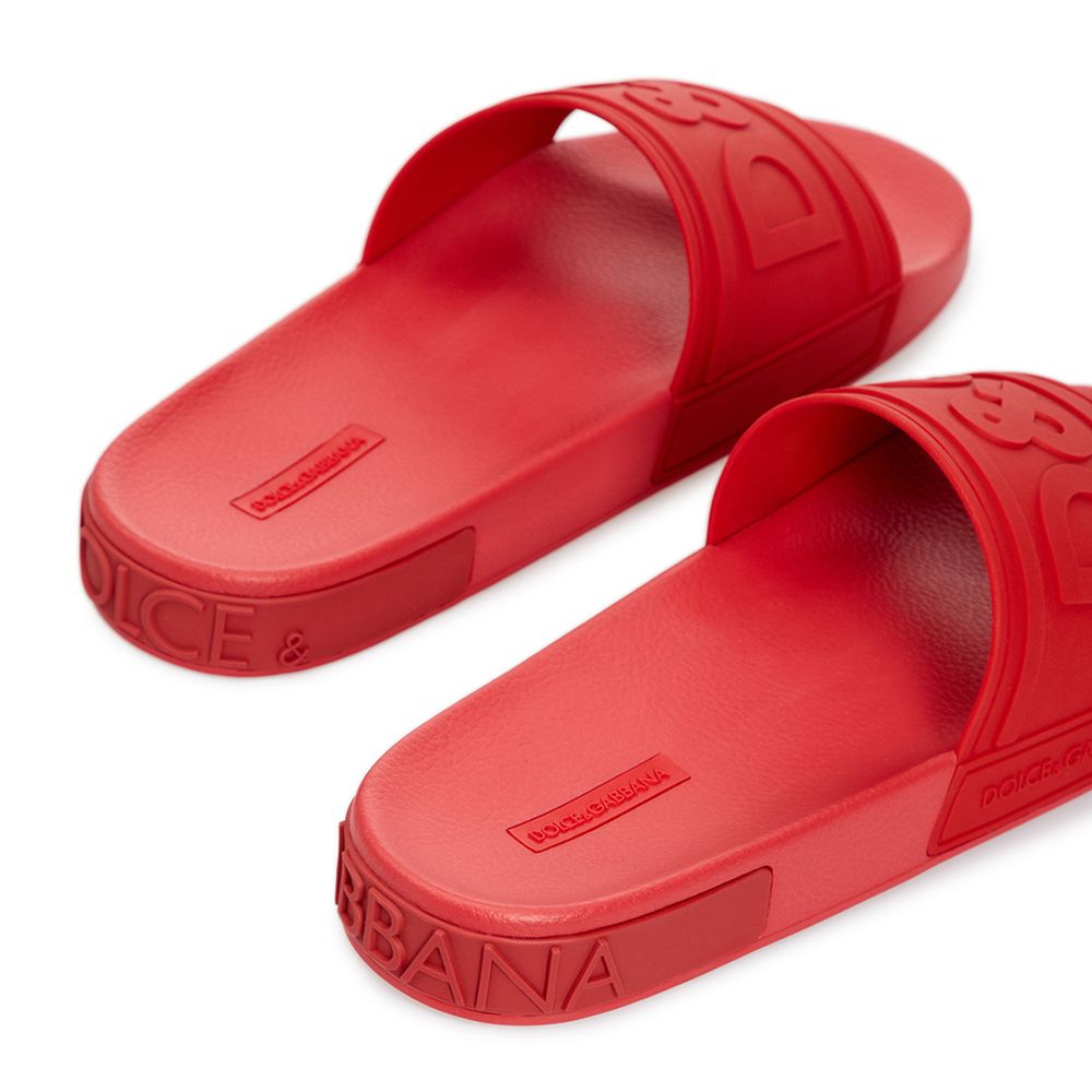 Dolce & Gabbana men’s slippers in rubber and thermoplastic with D&G printed logo, creatively printed insole