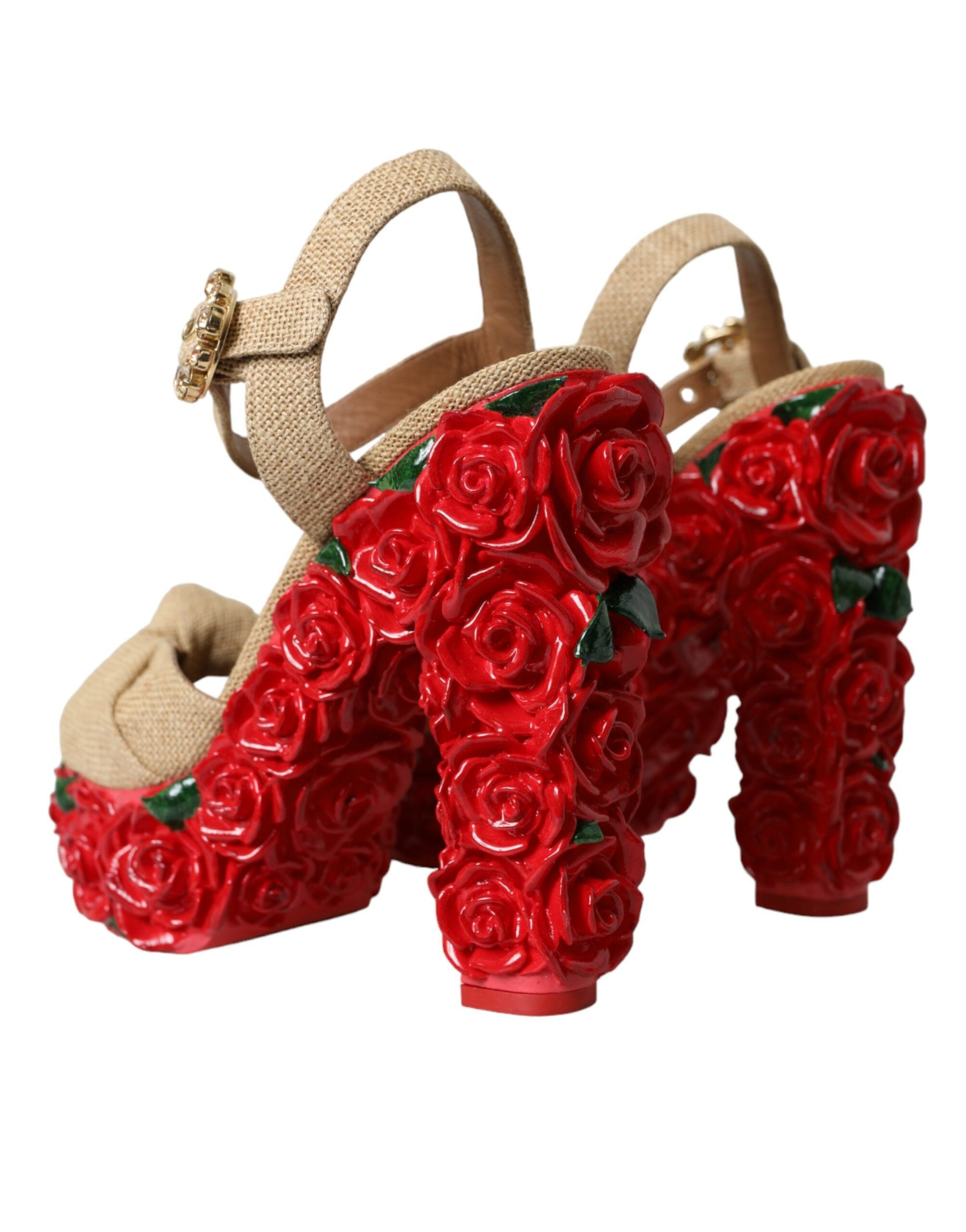 Dolce & Gabbana Red Roses Crystal Platform Sandals Shoes