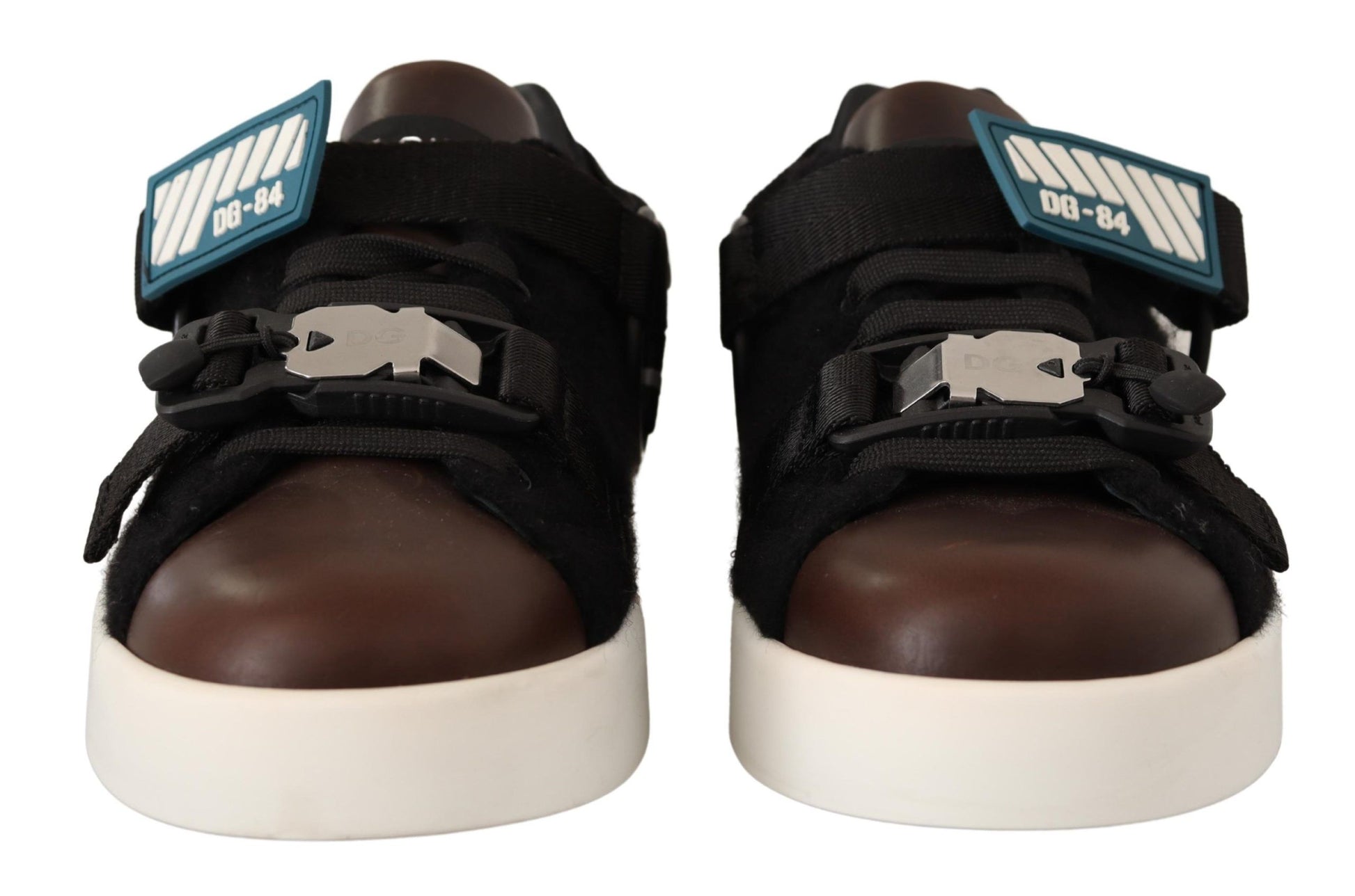 Indulge in the blend of luxury and comfort with these Dolce & Gabbana low top casual sneakers. Designed for the fashion-forward individual, these sneakers feature a lavish leather and shearling construction, offering both style and warmth. The classic brown hue is complemented by striking black accents, creating a versatile pair of shoes that will elevate any ensemble. Secure your stride with the robust lace and buckle strap closure, and enjoy the durability of the expertly crafted rubber sole. These sneakers are a true testament to Italian craftsmanship, ensuring you step out in elegance and sophistication.