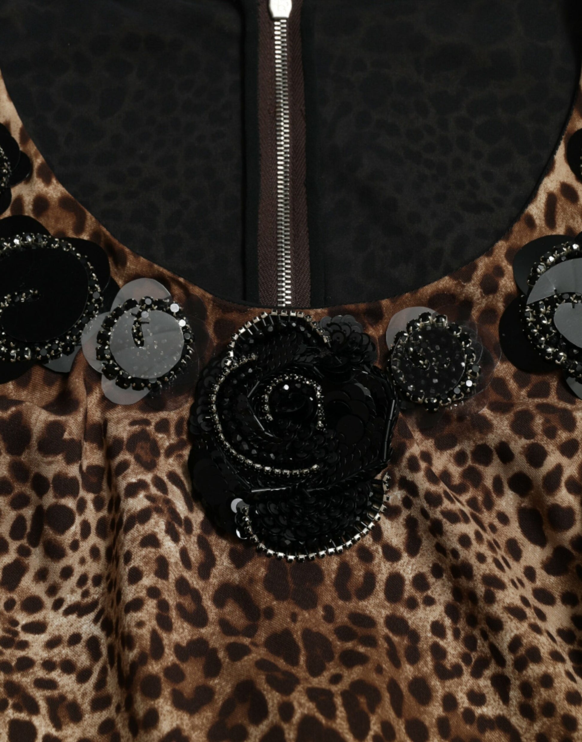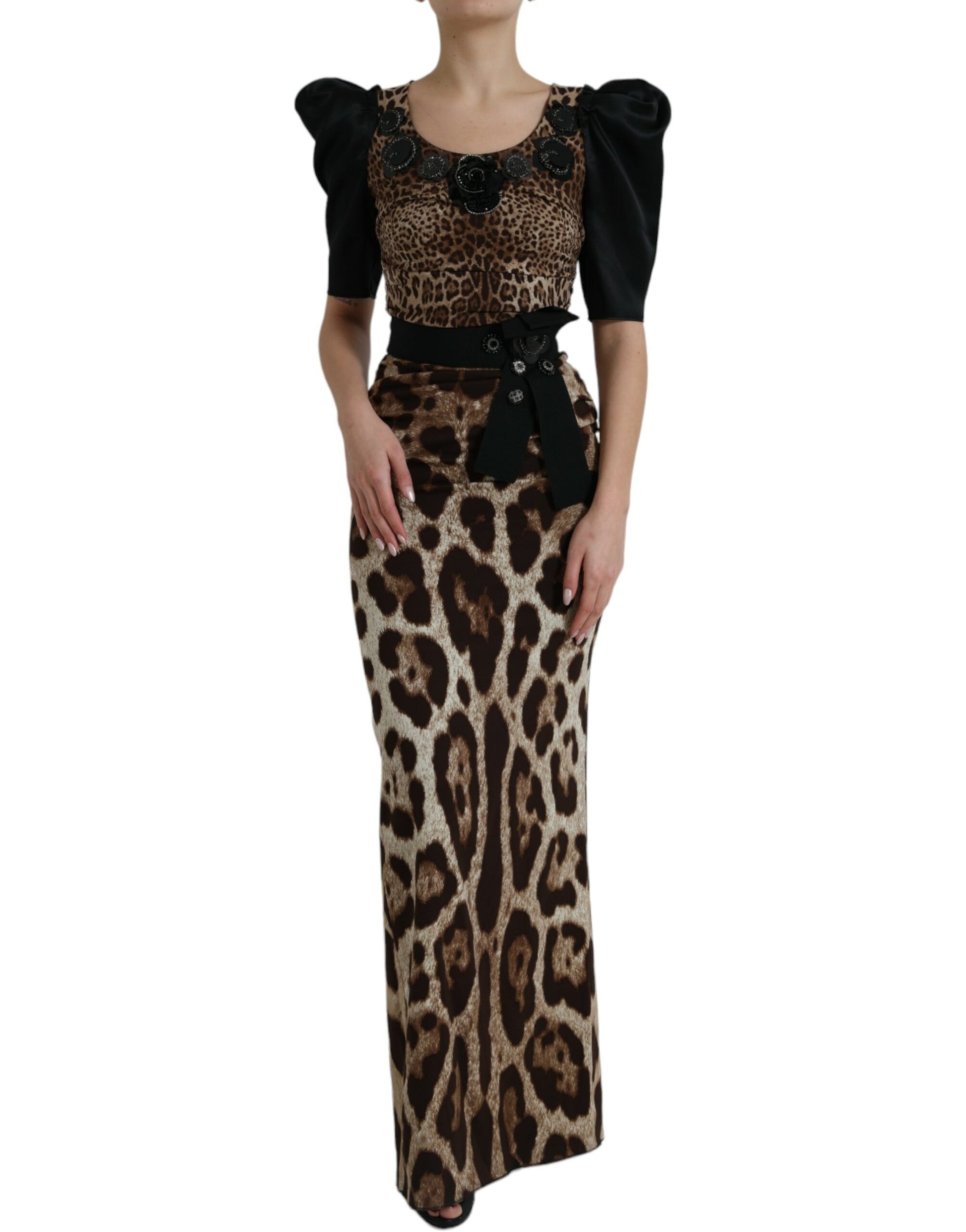 Dolce & Gabbana Silk Leopard Embellished Long Dress