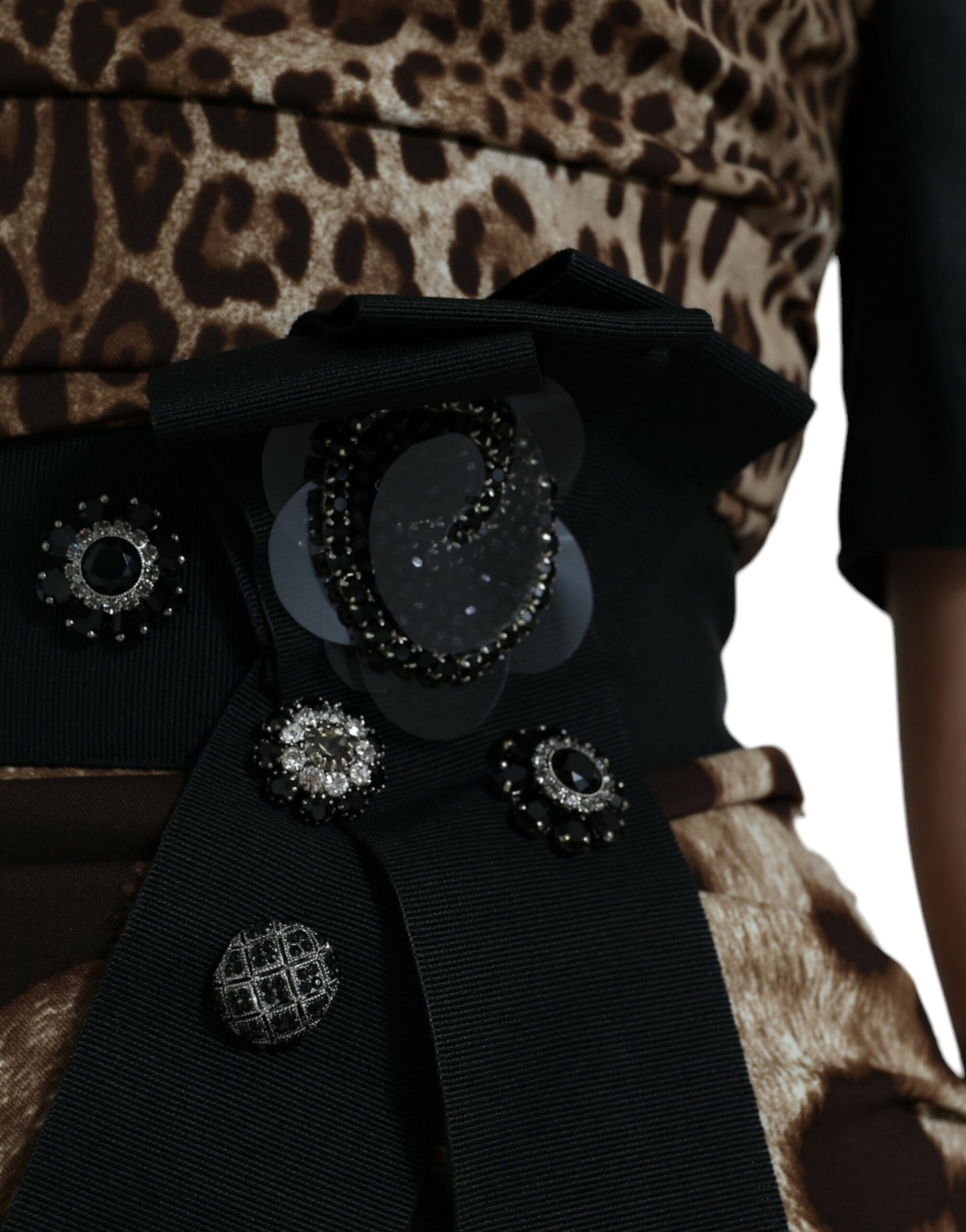 Indulge in the epitome of elegant allure with this stunning long dress by Dolce & Gabbana. This exquisite piece is expertly crafted from the finest silk blend, boasting a breathtaking leopard print that captures the essence of chic sophistication. The dress is thoughtfully designed with an embellished belted waist to accentuate your figure, and features discreet zipper closure for a seamless look. Proudly made in Italy, it embodies the luxury and craftsmanship signature to the brand. Whether attending a gala or an enchanted evening event, this dress promises to make a statement.
