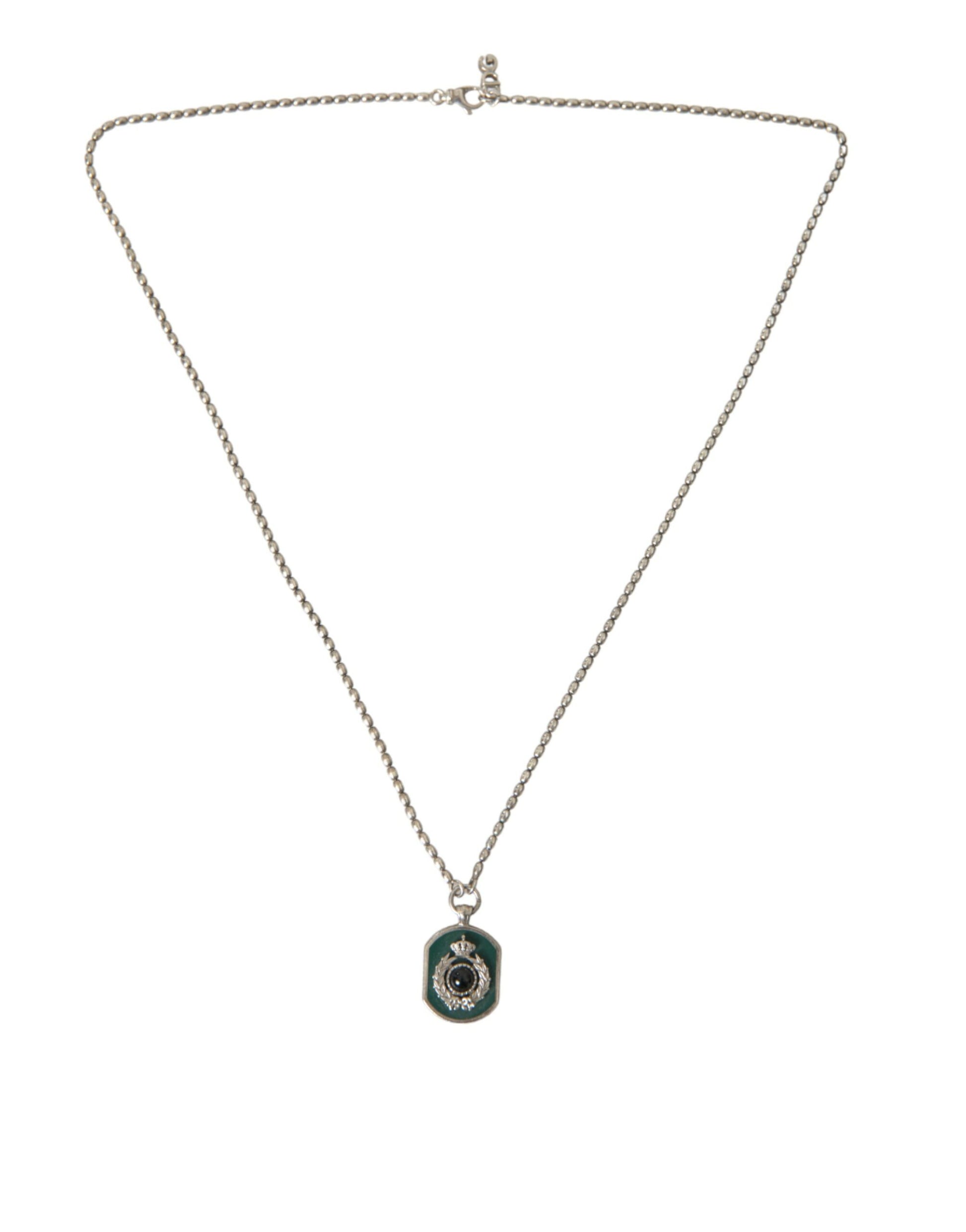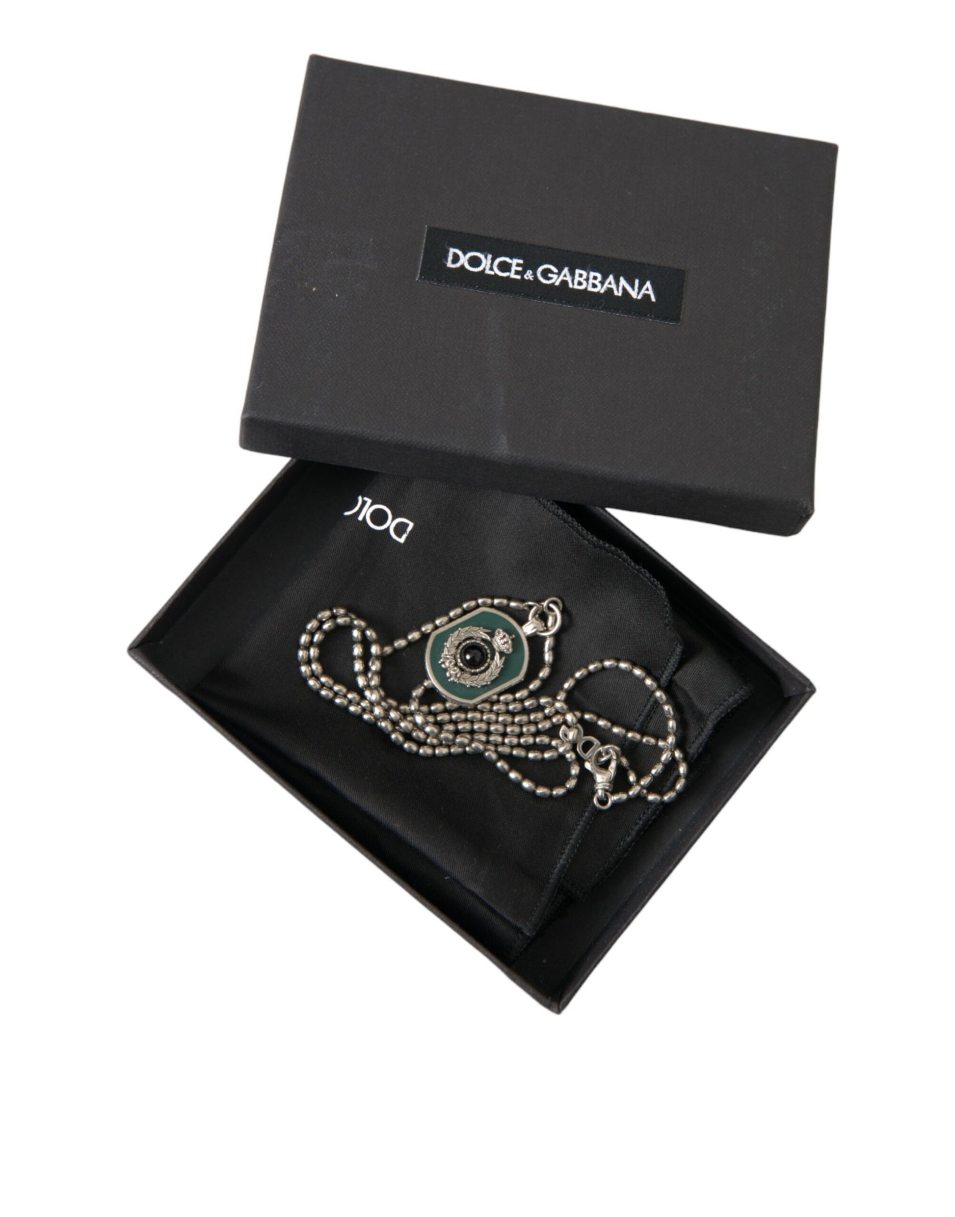 Dolce & Gabbana Silver Tone Brass Chain Tag Bead Crown Pendant Necklace