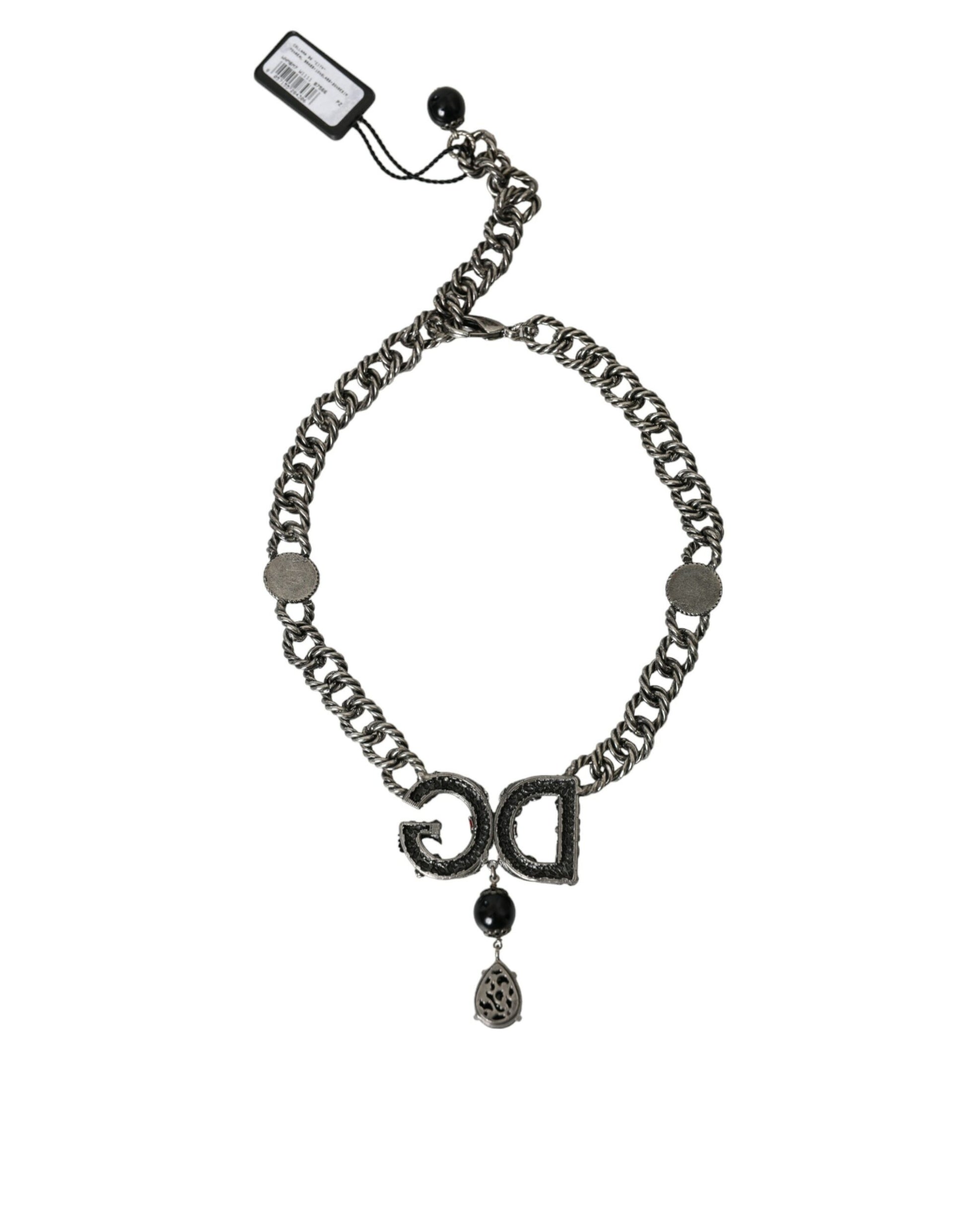 Dolce & Gabbana Silver Tone Brass DG CITY Embellished Jewelry Necklace