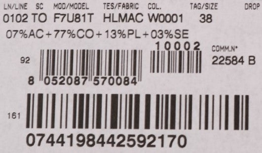- Material: 77% Cotton, 13% Polyester, 7% Acetate