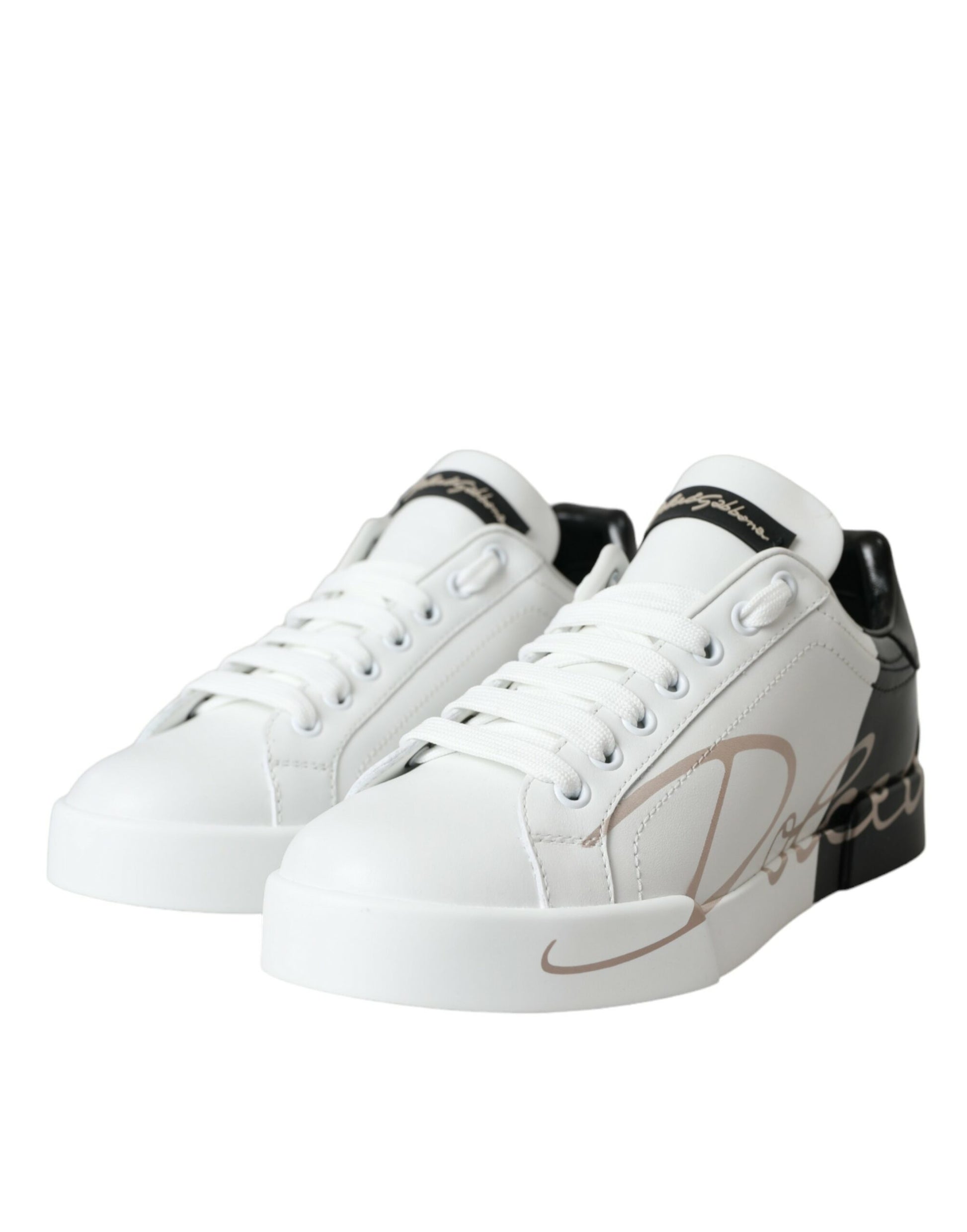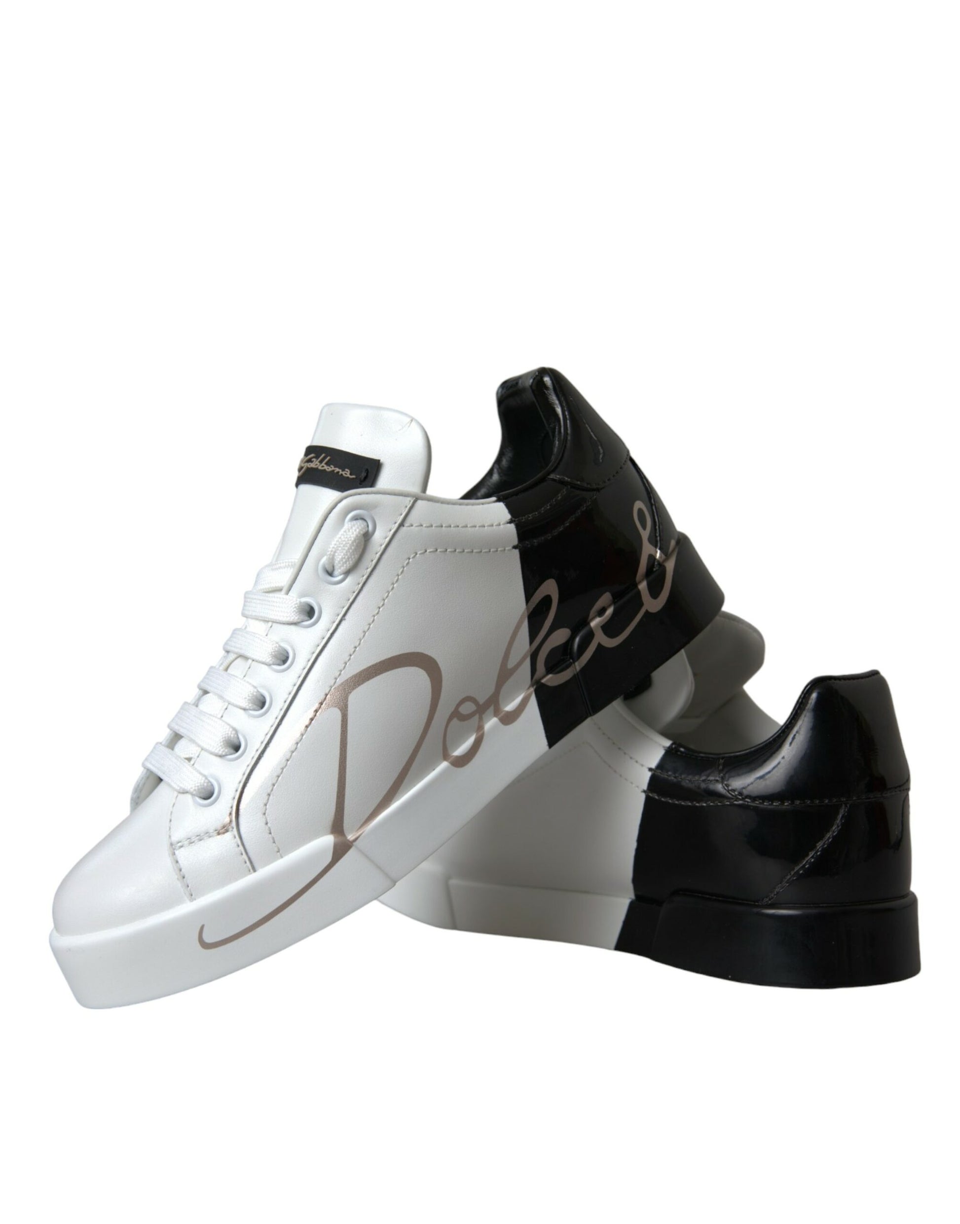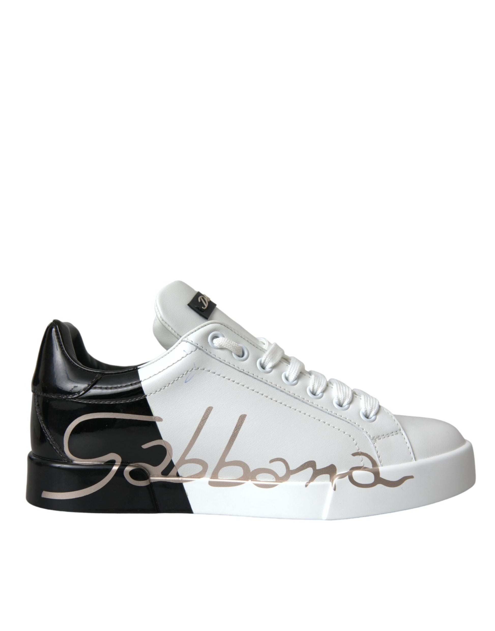 Dolce & Gabbana White Black Portofino Low Top Leather Sneakers Shoes