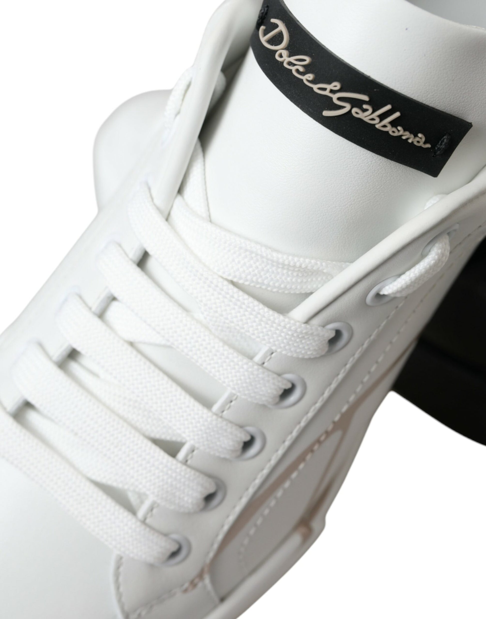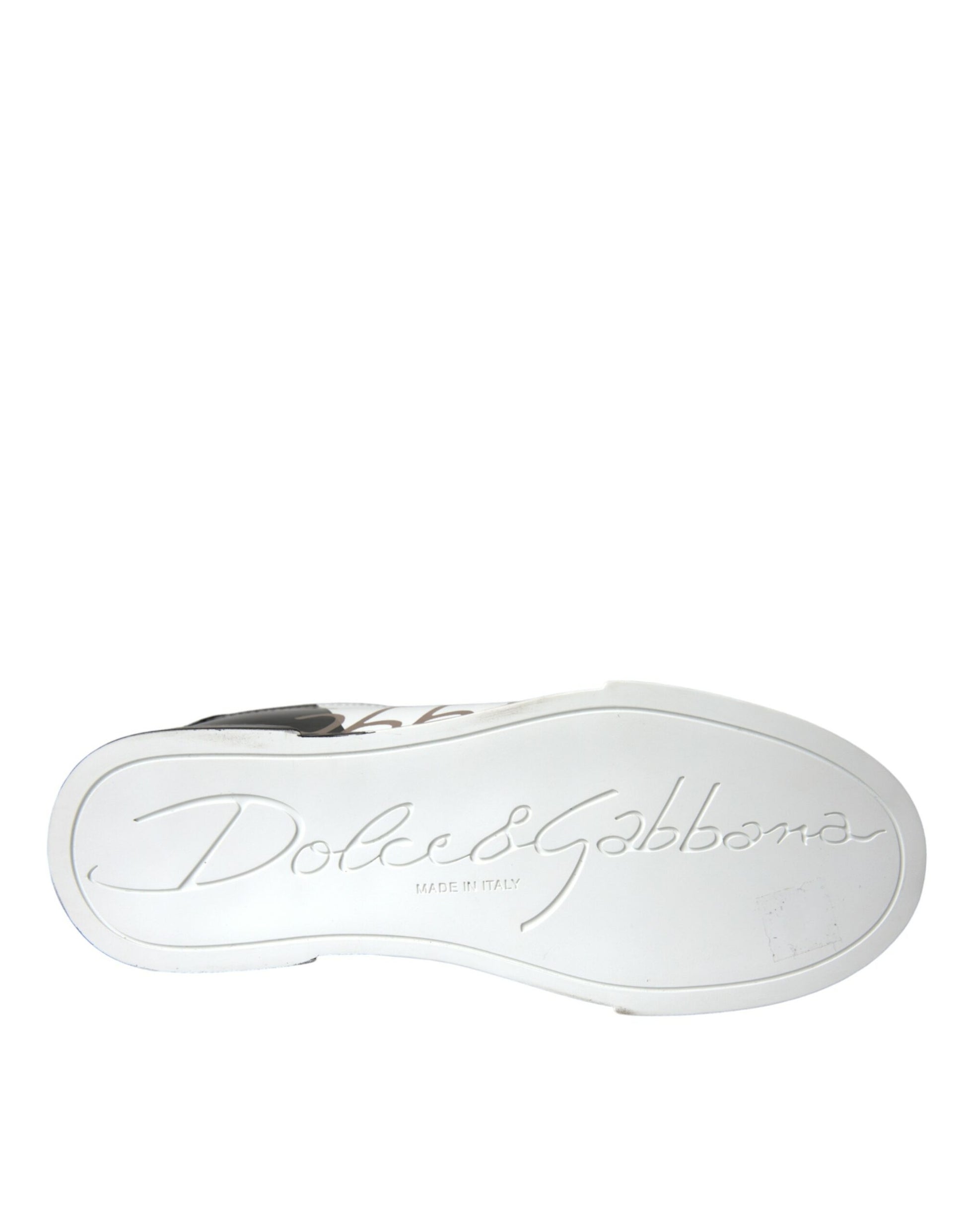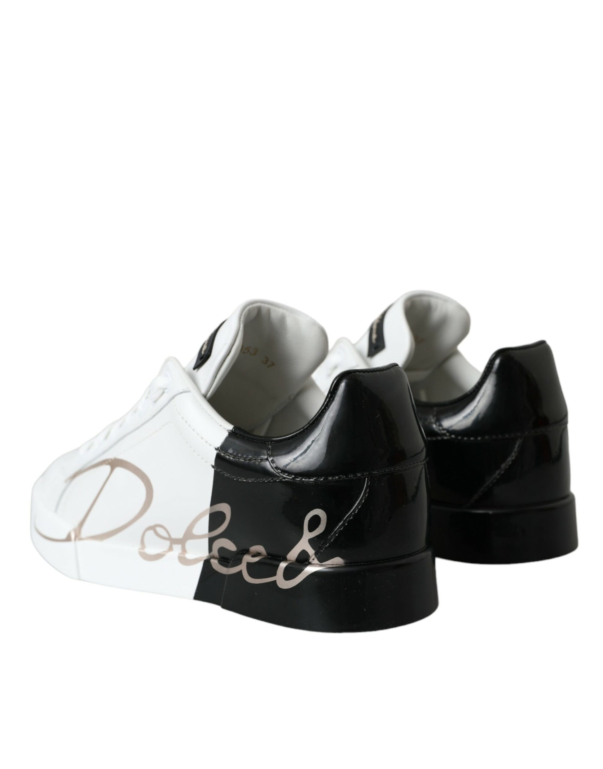 Dolce & Gabbana White Black Portofino Low Top Leather Sneakers Shoes