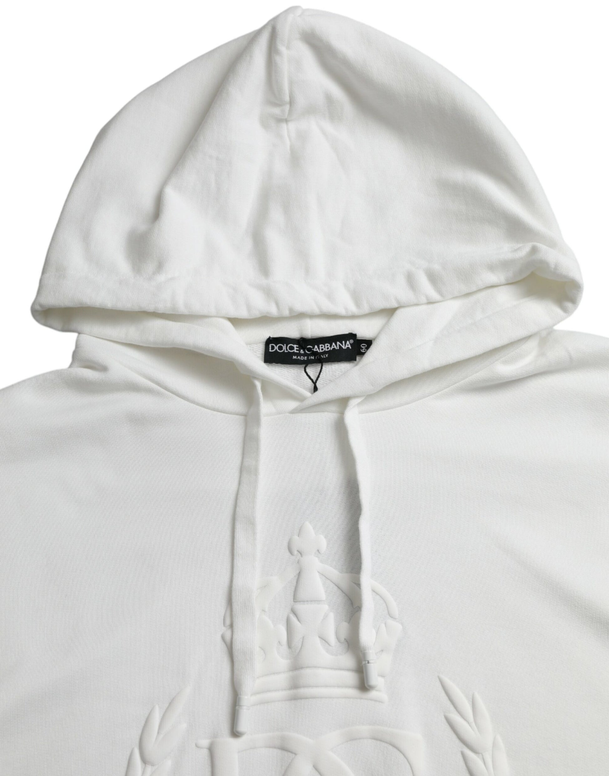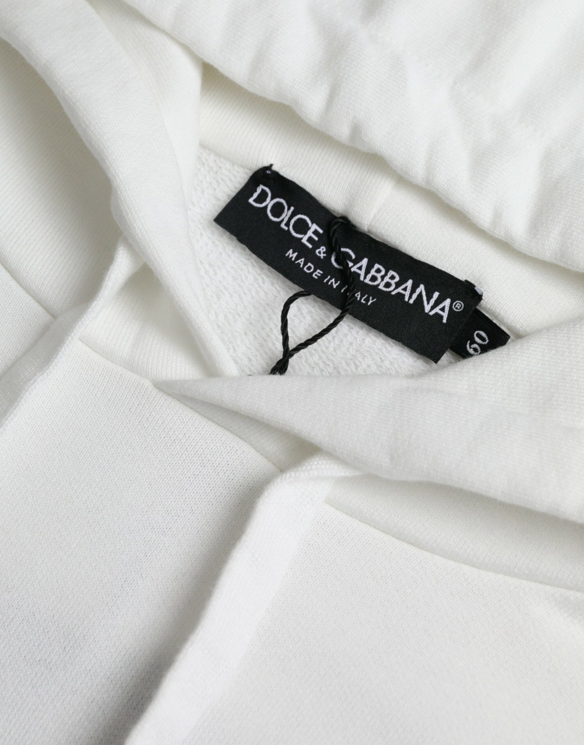 Dolce & Gabbana White Cotton Hooded Sweatshirt Pullover Sweater